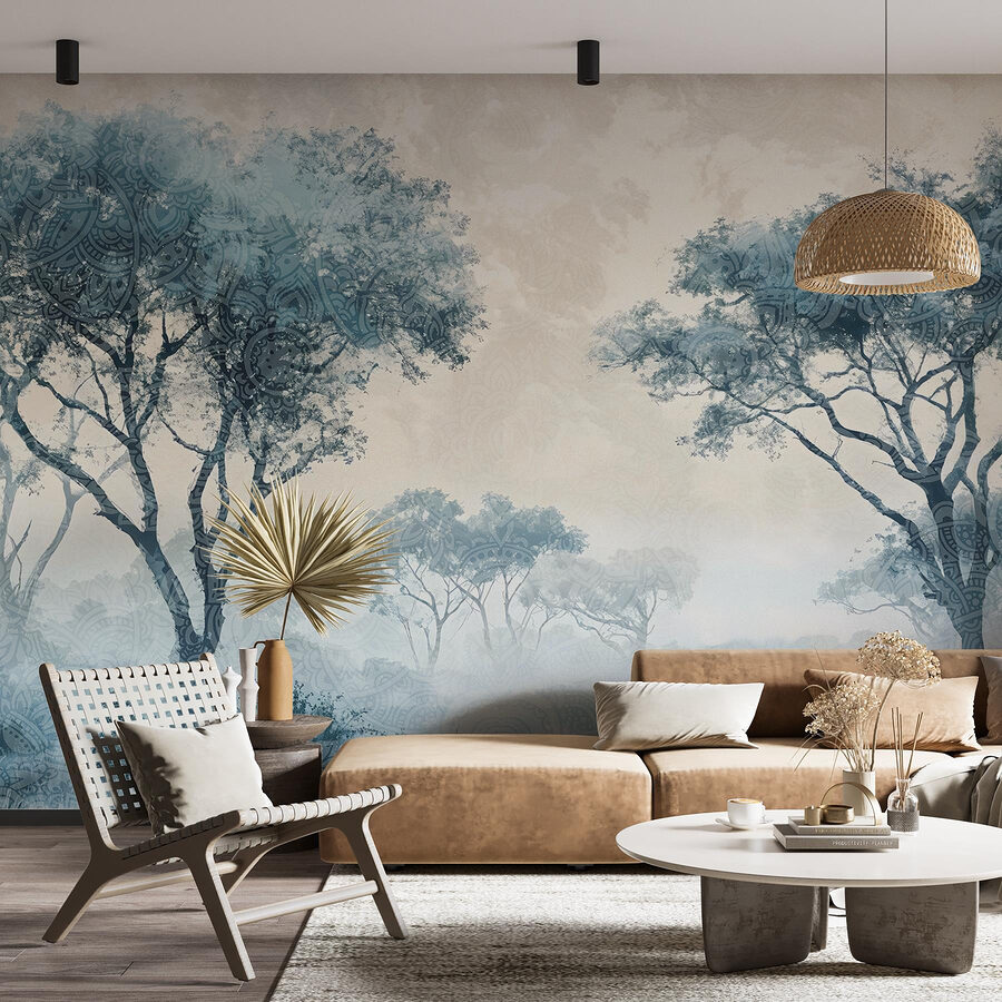 Transform a wall into a serene escape with the “Foggy Landscape with Trees and Plants” mural. Imagine stepping into a misty forest right from your living room. The soft blues and gentle silhouettes of trees create a calming vibe, almost like a whisper from nature. Whether it’s for a cozy reading nook or a zen bedroom, this mural wraps your space in tranquility. Plus, it’s a great backdrop for those coffee chats or deep thoughts about life—because, let’s face it, we all have those moments. Bring the outdoors in, and let your walls tell a peaceful story.