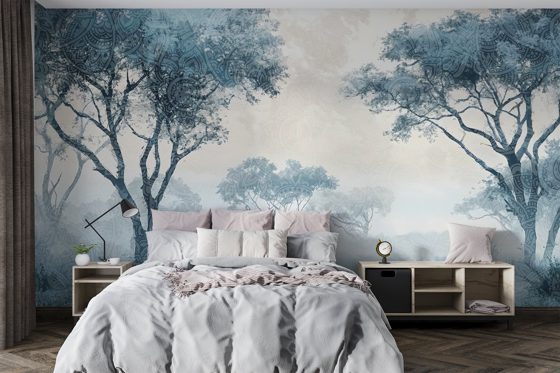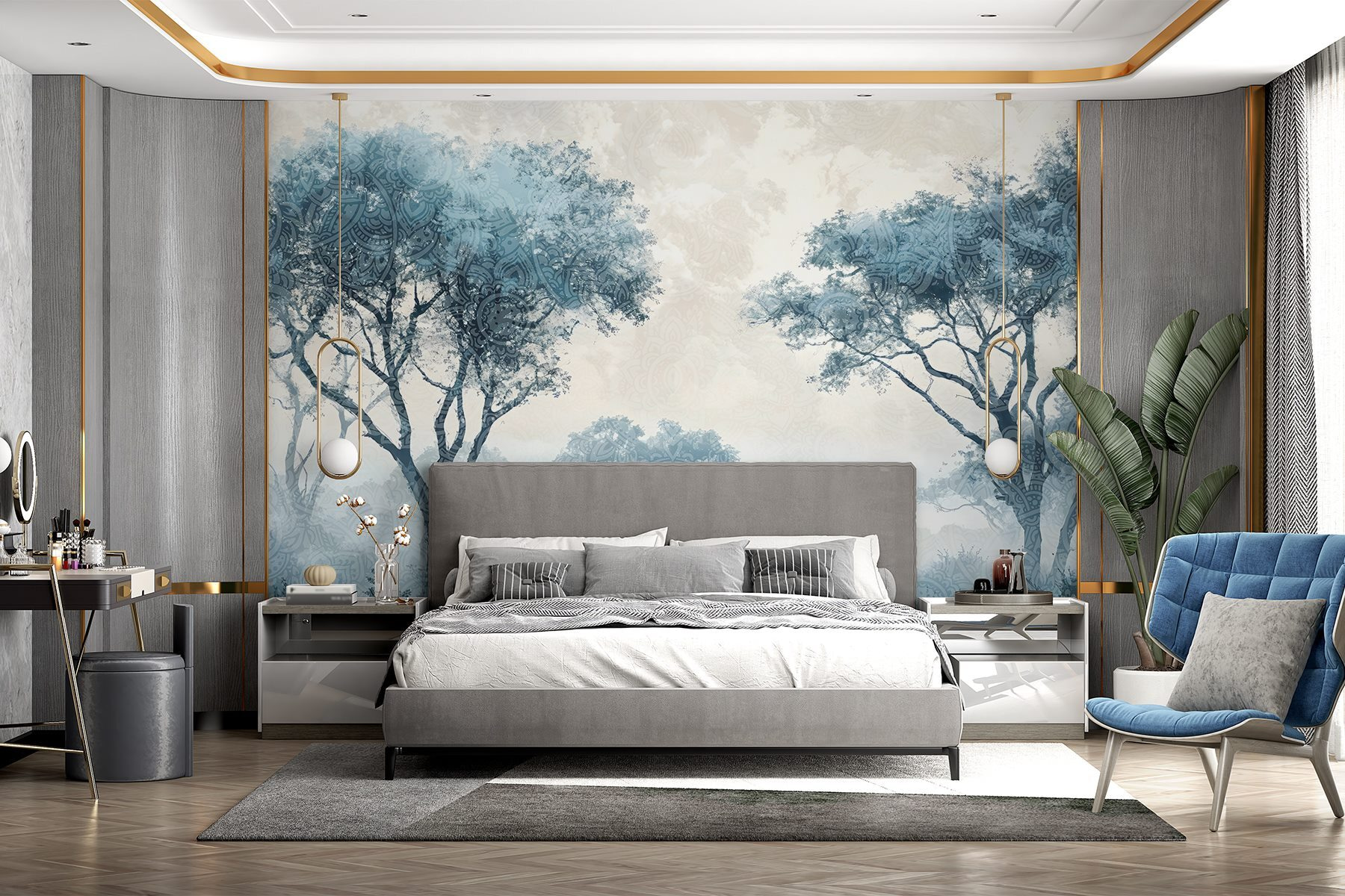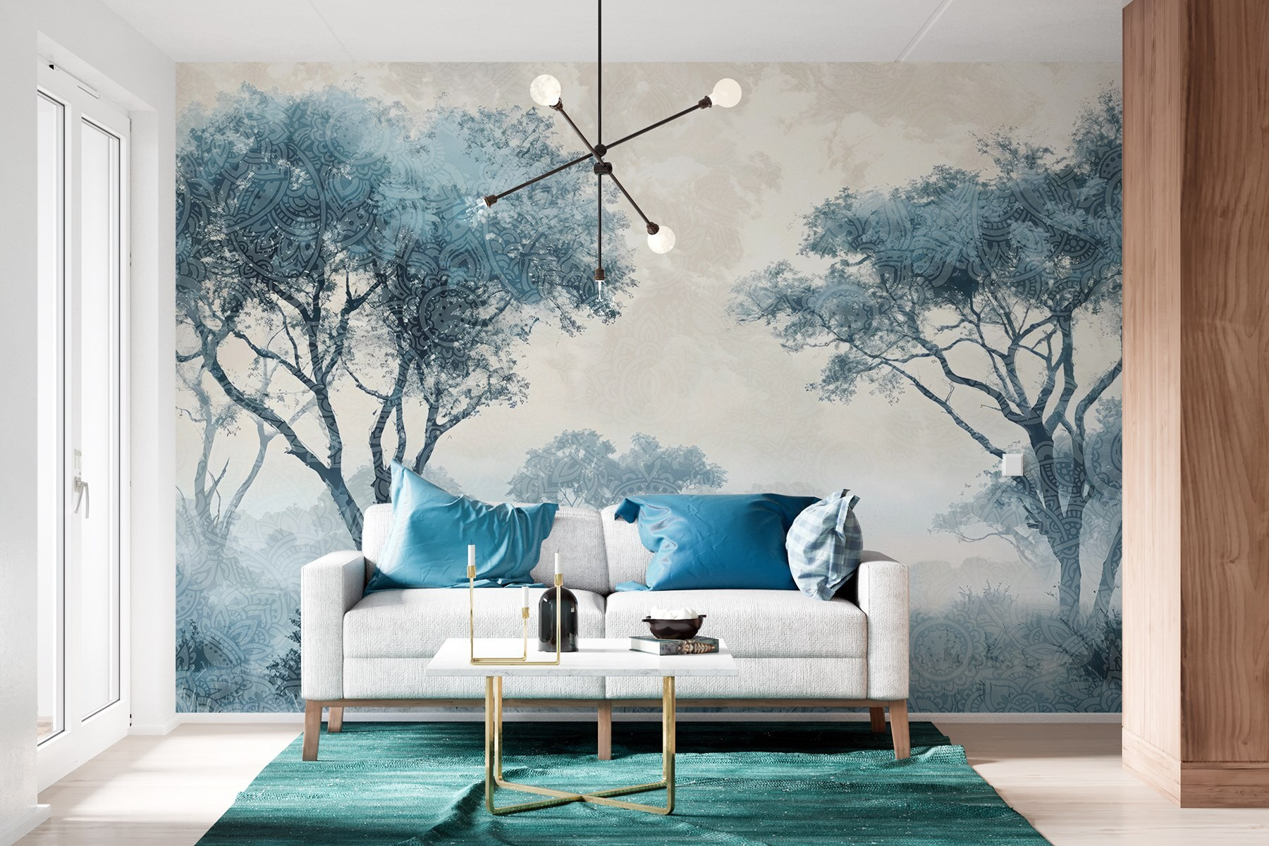 Transform a wall into a serene escape with the “Foggy Landscape with Trees and Plants” mural. Imagine stepping into a misty forest right from your living room. The soft blues and gentle silhouettes of trees create a calming vibe, almost like a whisper from nature. Whether it’s for a cozy reading nook or a zen bedroom, this mural wraps your space in tranquility. Plus, it’s a great backdrop for those coffee chats or deep thoughts about life—because, let’s face it, we all have those moments. Bring the outdoors in, and let your walls tell a peaceful story.