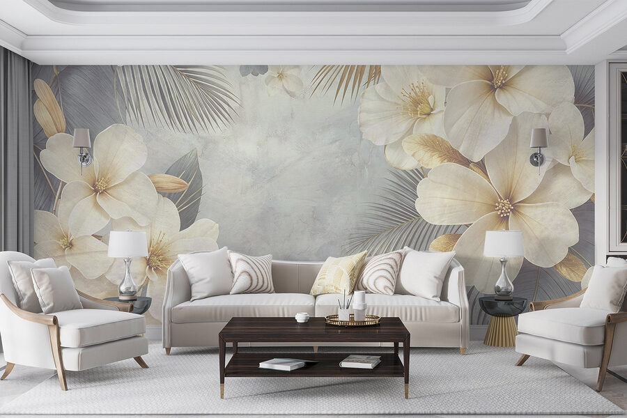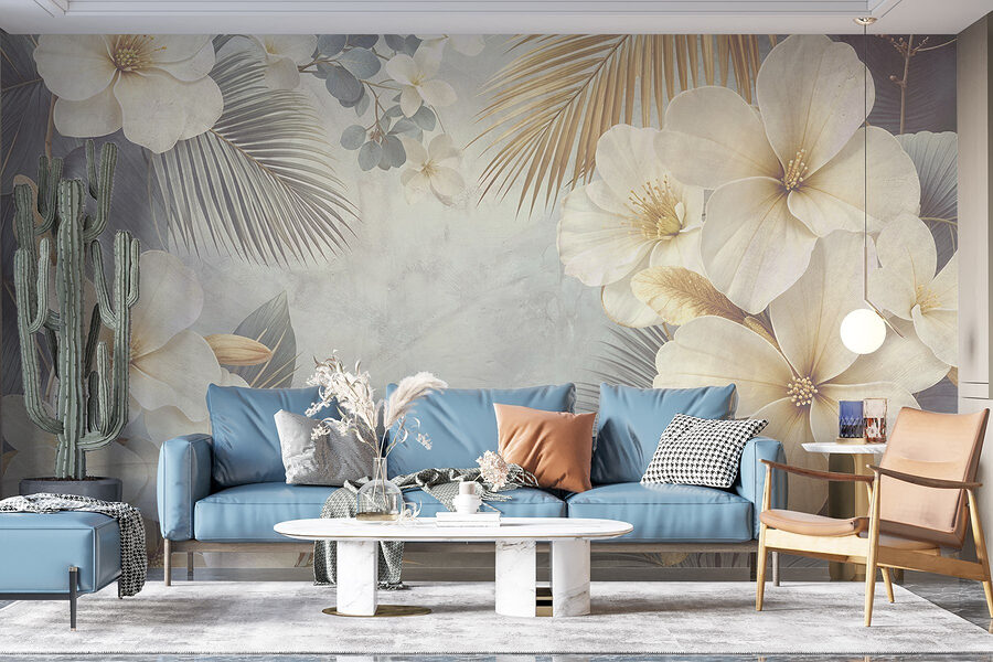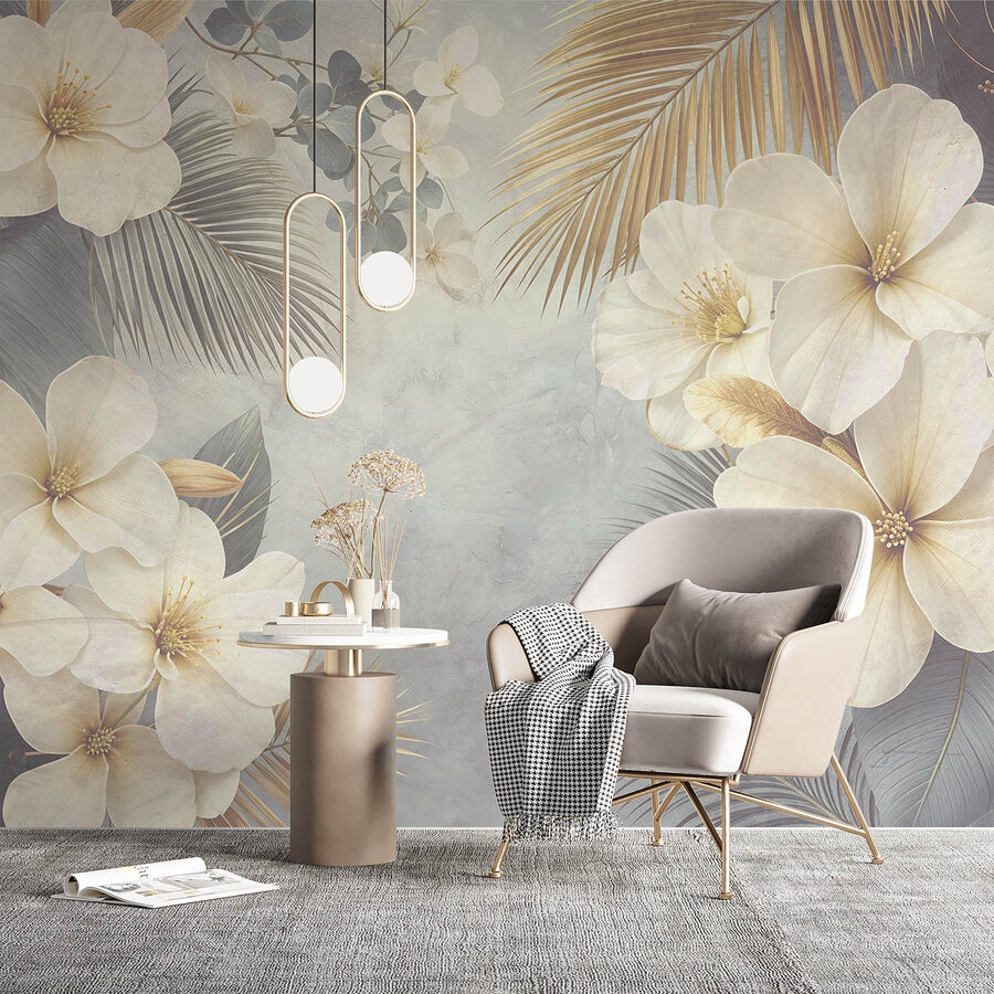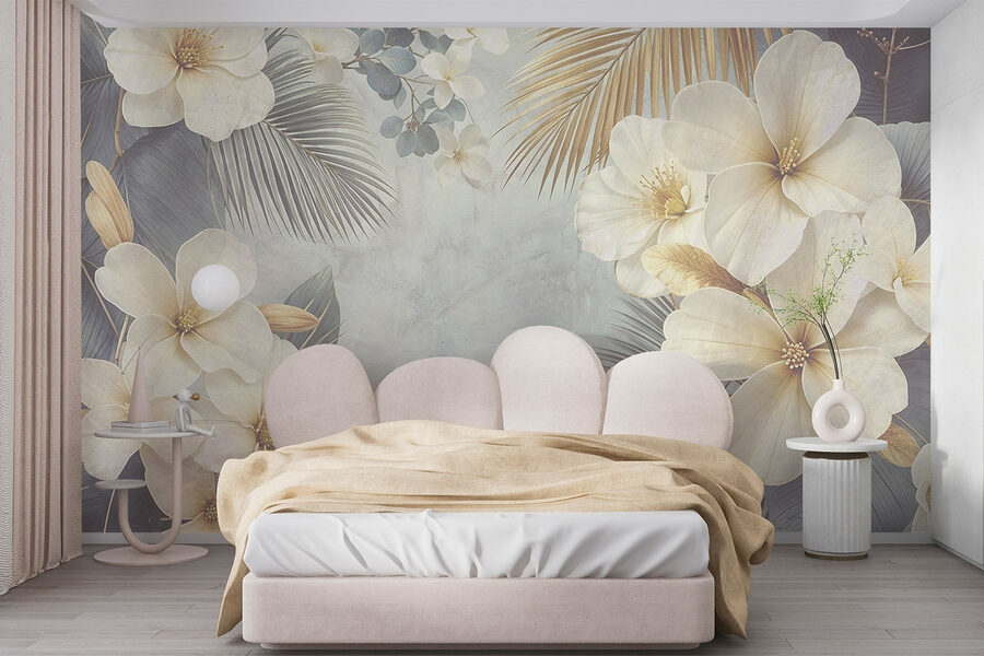 Transforming your space into a serene paradise is as easy as a single mural. This “Wall Murals White Flowers and Leaves” design brings a touch of nature right into the heart of your home. Picture soft, delicate blooms mingling with leafy greens, all set against a calming backdrop. It’s like a breath of fresh air without stepping outside.