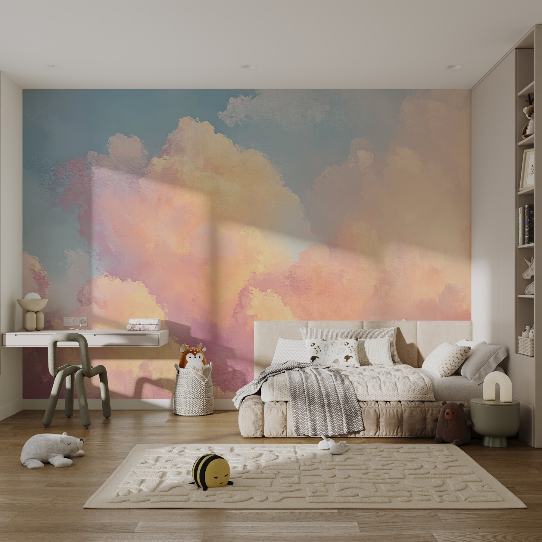 Transform any room into a dreamy escape with this stunning mural of colorful clouds in the sky. Imagine waking up and being greeted by soft hues of pink and blue—like a sunrise that never fades. It invites a sense of calm and daydreaming, perfect for sipping coffee while trying to figure out why clouds look like animals. Ideal for a cozy living space or a whimsical bedroom, this mural sparks creativity and wonder. Your walls deserve a fun twist, so why not give them a splash of sky? It’s like having an endless view without ever needing to leave the house!