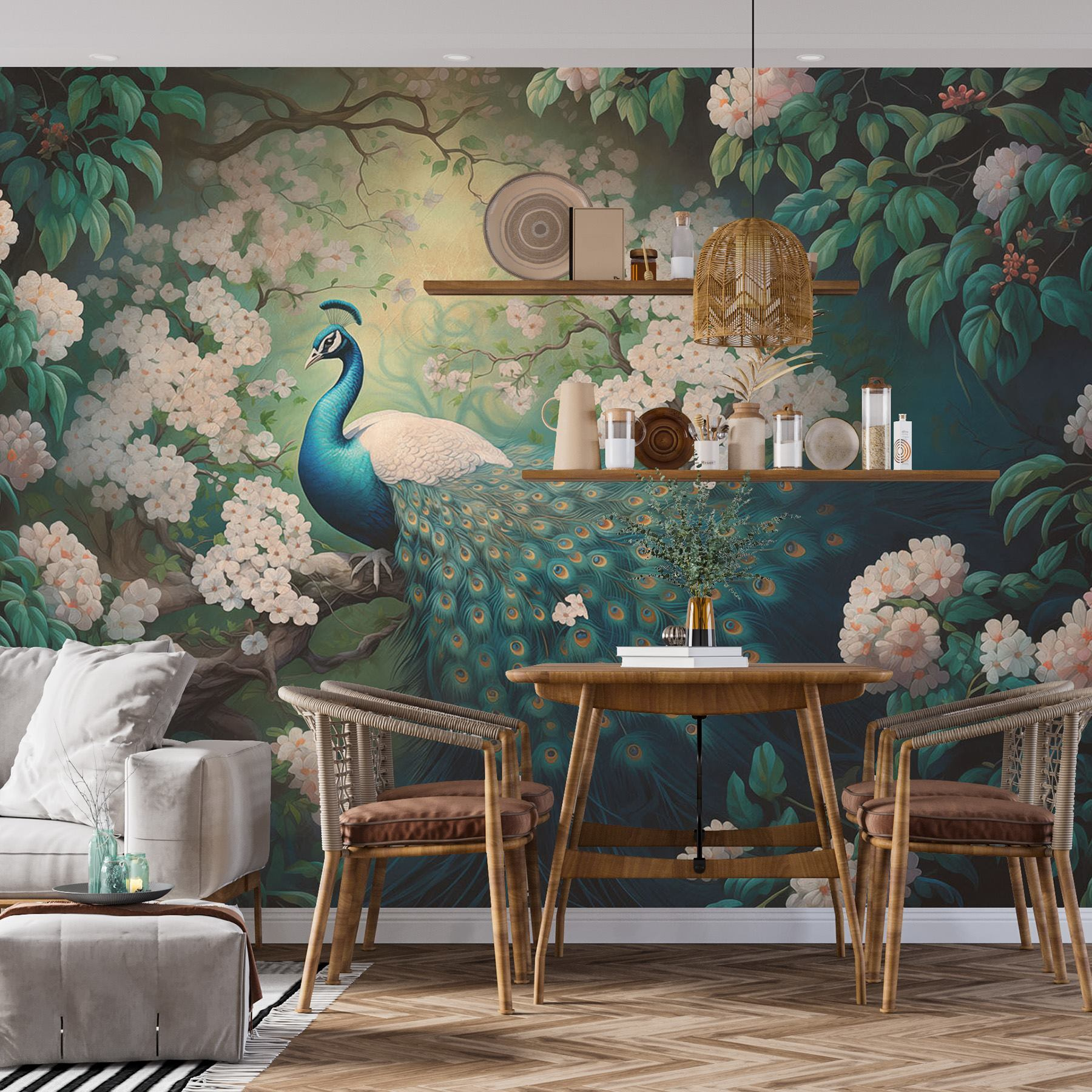 Brighten up any corner with this stunning wall mural featuring a peacock perched gracefully among flowering branches. It’s like bringing a little slice of nature indoors—who wouldn’t want that? Imagine sipping your morning coffee while this majestic bird struts its stuff right in your living room. The vibrant blues and delicate whites create a dreamy atmosphere, and those intricate details? Total conversation starters! Whether it’s a quiet afternoon or a lively gathering, this mural adds a touch of elegance and warmth that feels just right. Who knew a peacock could feel so cozy? Perfect for anyone ready to transform their space with something truly special.