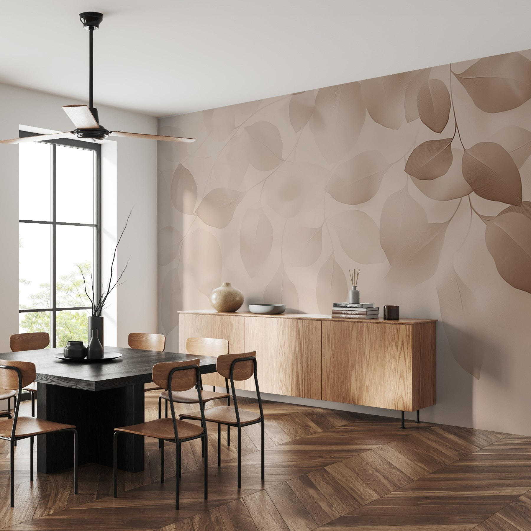 Transform your space with “Soft Leaves Dance in Gentle Light.” This mural wraps your walls in a soothing blend of pastel hues and delicate leaf patterns, creating a peaceful vibe that whispers tranquility. Imagine stepping into a room where nature’s grace hangs just an arm’s length away. It’s perfect for quiet mornings, steaming cups of coffee in hand, as sunlight plays off those soft outlines. Whether it’s a cozy nook or a dreamy bedroom, this mural invites you to pause, breathe, and perhaps even daydream a little. It’s like bringing a gentle forest breeze indoors—no hiking boots required!