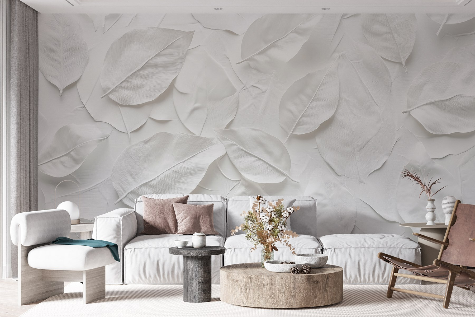 Transform any space with the soothing vibes of “Group of White Leaves.” This mural offers a calm and fresh backdrop that feels like a gentle forest breeze whispering through your home. Imagine a cozy nook filled with plants, paired with this mural—it’s almost like bringing the outdoors inside! The subtle variations of white are perfect for brightening up a room without overwhelming it. Perfect for that hallway that needs a little love or a living room that just feels… blah. It’s understated, yet it steals the show in the best way. So, if you want to unwind and invite nature in, this mural might just be your new best friend.
