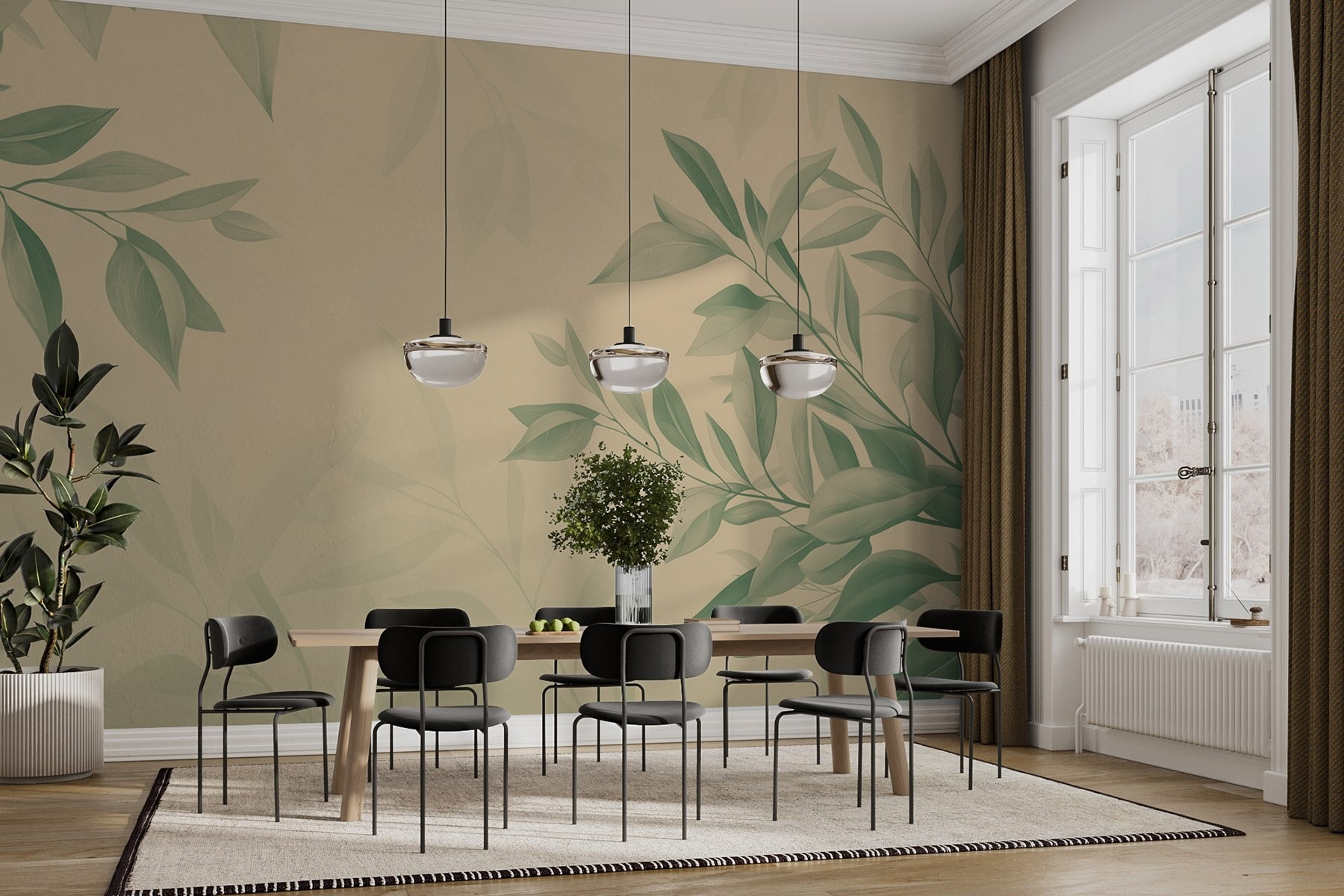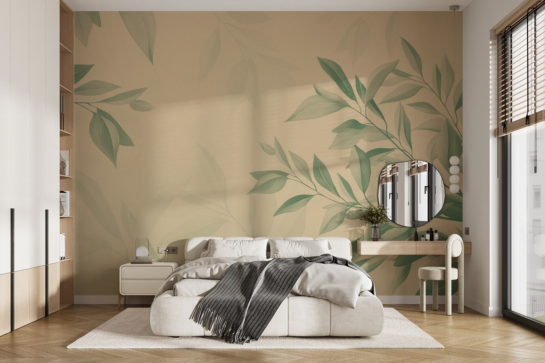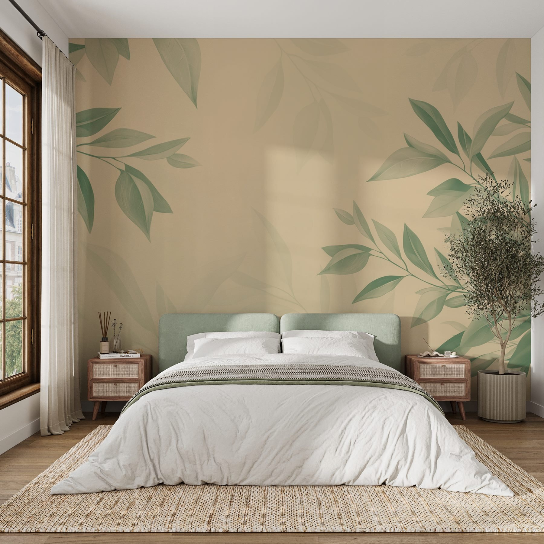 Transform any room into a cozy oasis with this charming wall mural featuring soft green leaves on a gentle backdrop. Picture curling up with a book, a warm drink in hand, while surrounded by the calming vibes of nature, right in your living space. The leaves softly stretching across the wall create a tranquil atmosphere, perfect for daydreaming or unwinding after a long day. It’s like having a little slice of the great outdoors indoors! Perfect for a bedroom or a serene reading nook, this mural brings life and relaxation together seamlessly. Who wouldn’t want to feel like they’re lounging under a leafy canopy every day?