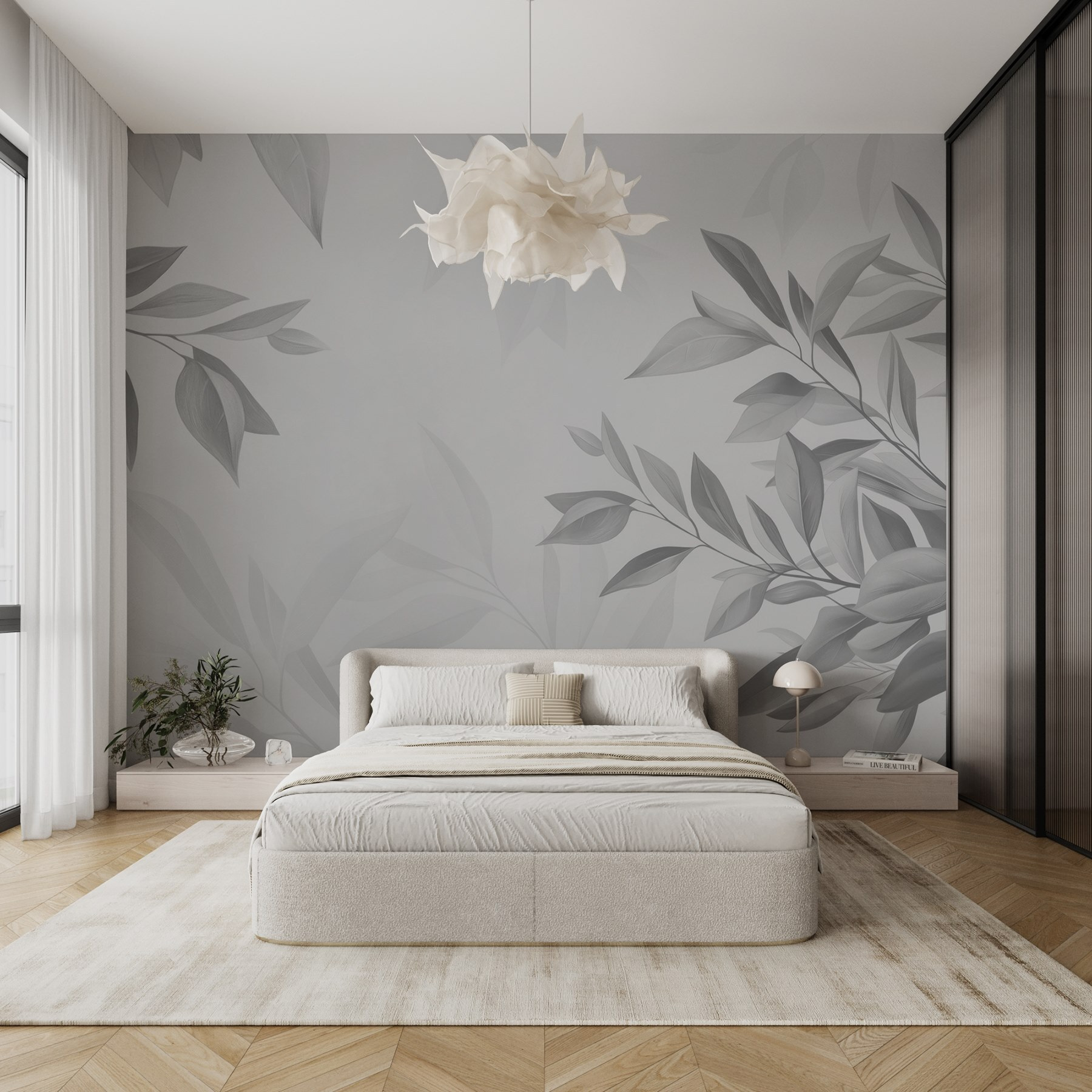 Imagine stepping into a serene oasis every time you walk into your room. “Soft Leaves in Gentle Shades” is like a breath of fresh air for your walls. These delicate leaf patterns in soothing tones play nice with any decor, bringing an effortless charm that’ll make your space feel alive. It’s perfect for creating a cozy reading nook or a calm meditation space—just picture curling up with a good book, surrounded by this peaceful backdrop. The subtle design whispers tranquility while offering just the right touch of artistry. You’ll swear the leaves are gently swaying, inviting you to unwind and breathe deep. Who knew a mural could be this soothing?