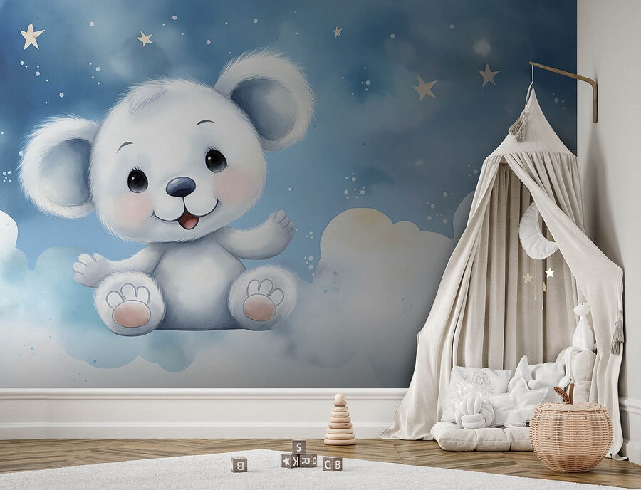 Transform any space into a cozy wonderland with this delightful mural of a cheerful white bear. Perfect for a child’s room or even a playful nook, this charming creature seems to float amongst soft clouds and twinkling stars. Imagine the giggles as little ones point and say “Look, Mommy, a bear!” It’s like having a cuddle buddy on the wall, ready to inspire dreams of adventures in snowy landscapes. The gentle colors and sweet expression make it an inviting addition, sparking joy every time you catch a glimpse. Who wouldn’t smile at that face? Bring on the imagination!