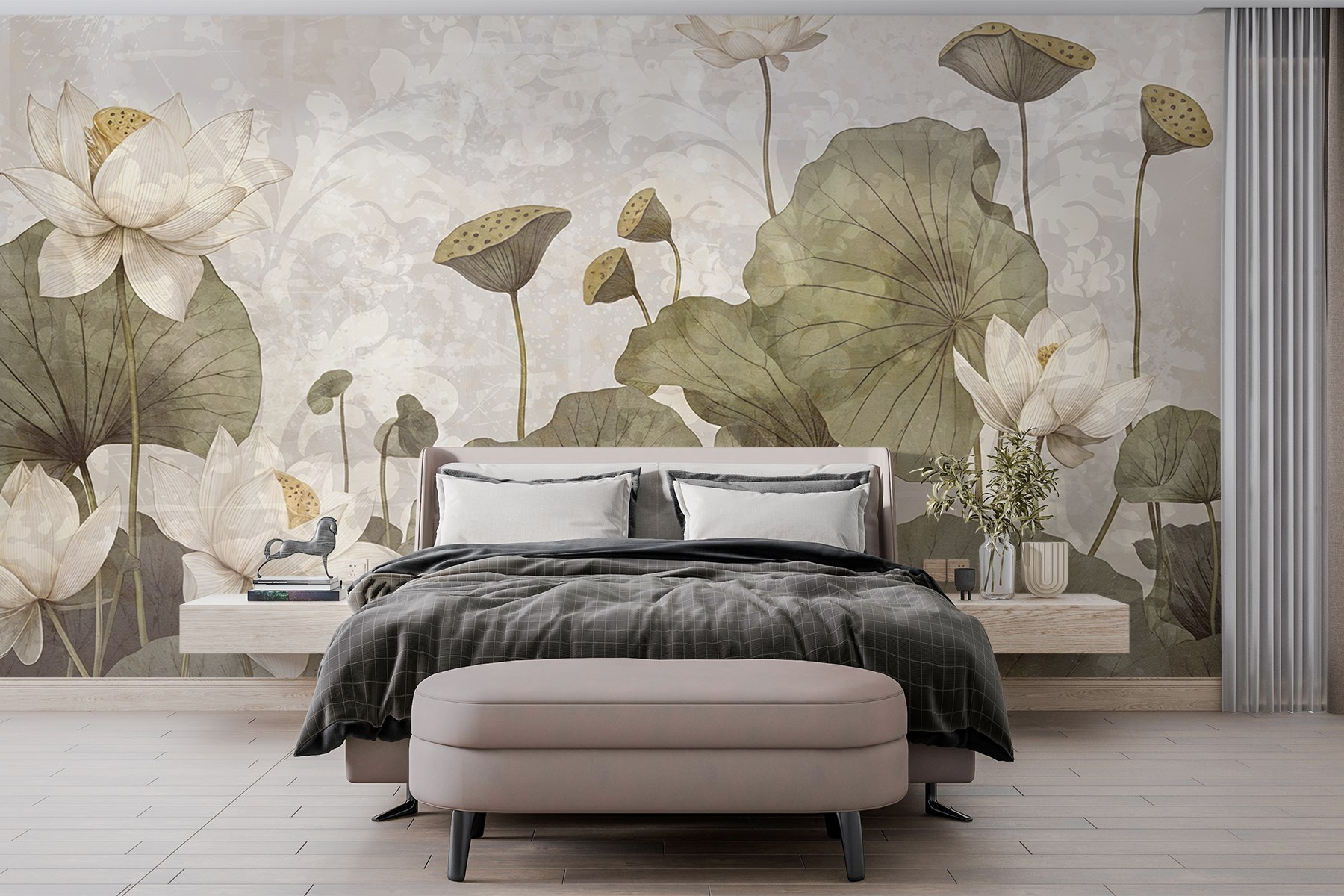 This mural doesn’t just beautify the space; it invites serenity. Perfect for those quiet moments with a cup of tea or when you just need a little escape from the day’s chaos. Picture a cozy night in, candlelight flickering, and those serene blooms making everything feel calm and inspired. Bring a piece of tranquility indoors—it’s like having a little slice of nature right at home.