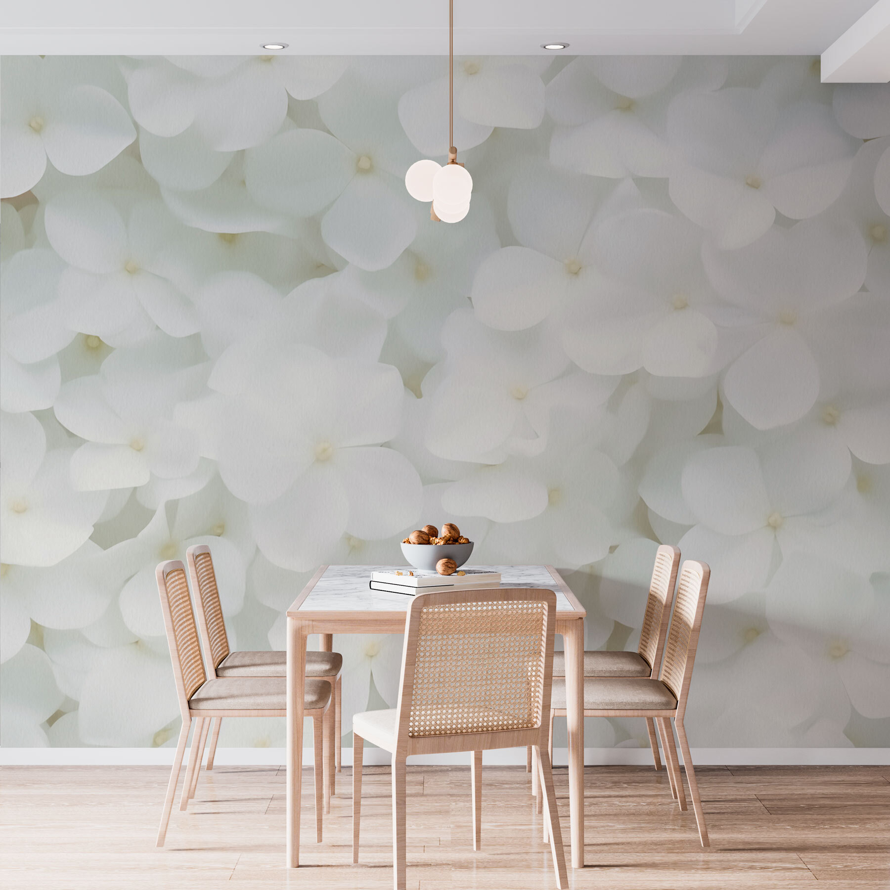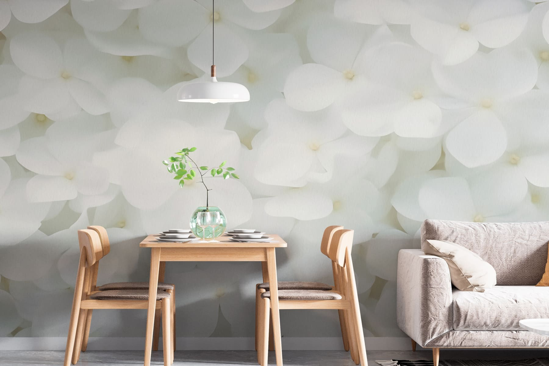 Transform your space into a serene escape with this lovely wall mural featuring a group of white flowers. Imagine waking up to a gentle garden of soft petals, bringing nature right into your home without the need for a green thumb. Perfect for a bedroom or cozy nook, this mural whispers elegance and simplicity. It’s like a breath of fresh air in a room, making it feel instantly more inviting. Whether hosting friends or enjoying a quiet evening, this floral backdrop sets the mood just right. Who wouldn’t want a piece of nature, minus the allergies?