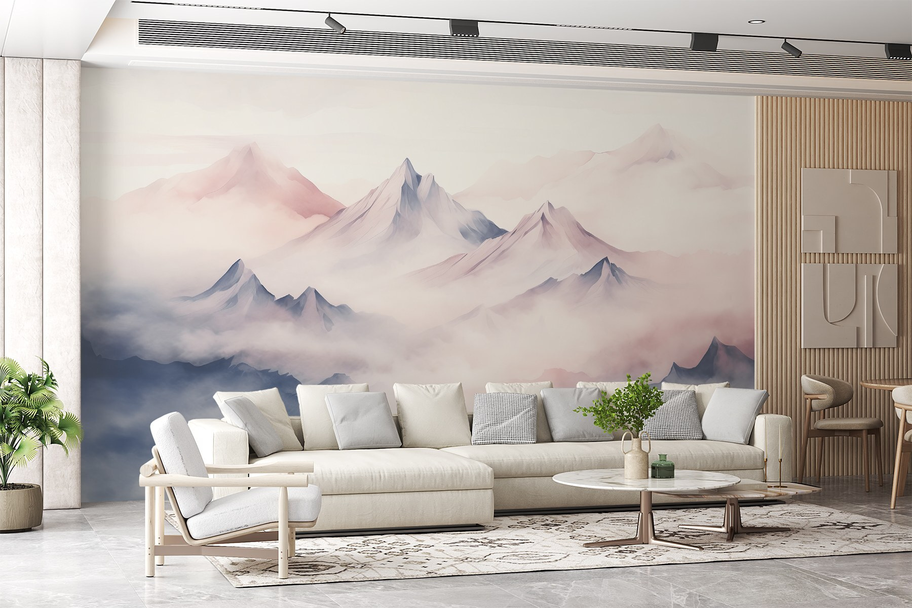 Transform any space with this dreamy “Wall Murals Mountain Range with Clouds.” Imagine waking up to misty peaks every day—seriously, who needs a getaway when your walls can do the trick? The soft watercolor hues blend like a morning sky kissing the mountains, perfect for calming vibes in a living room or bedroom.