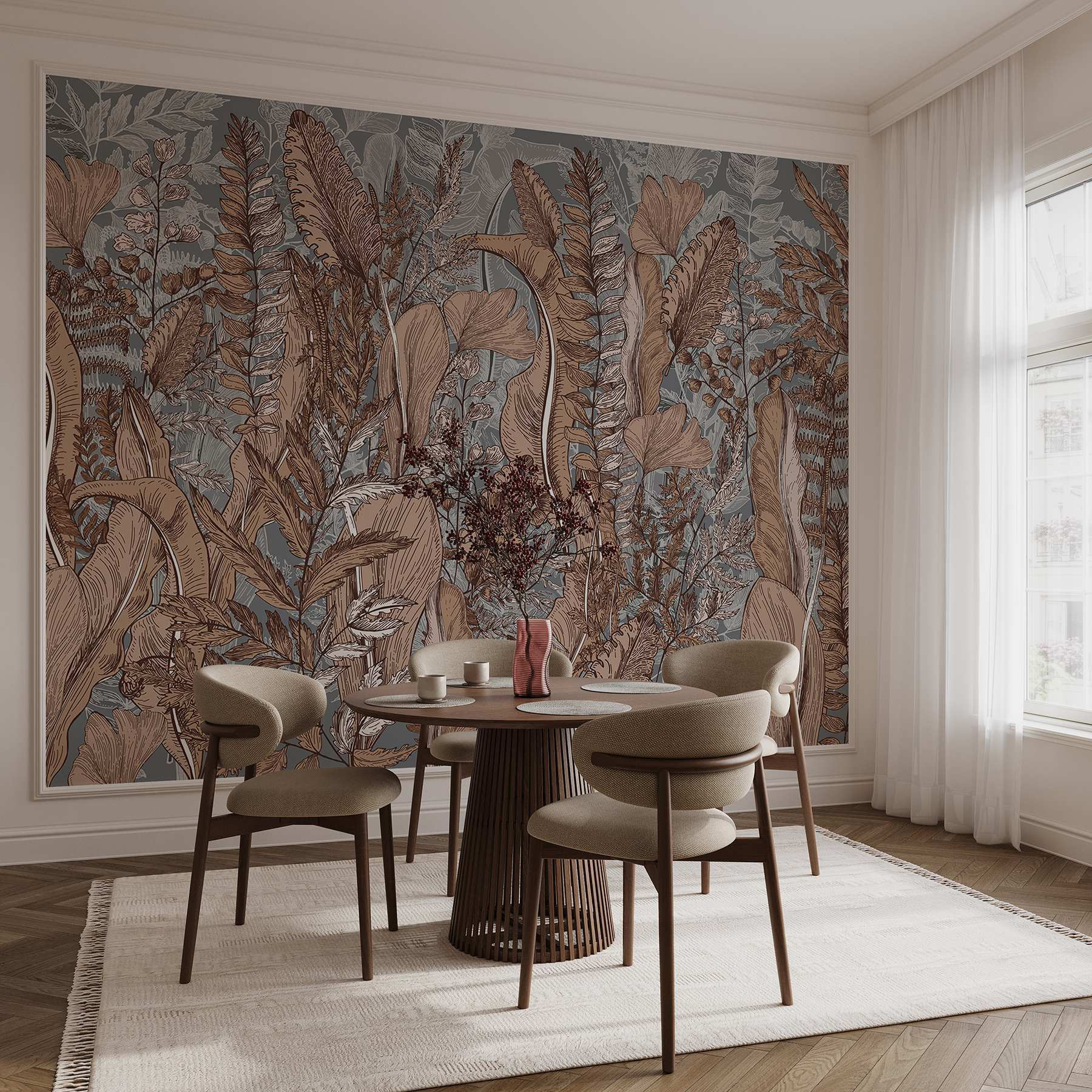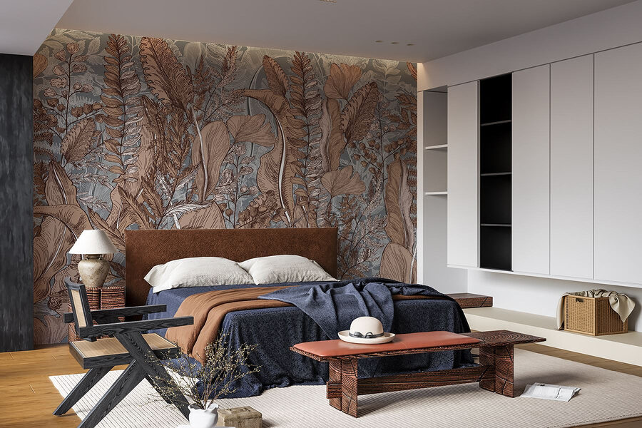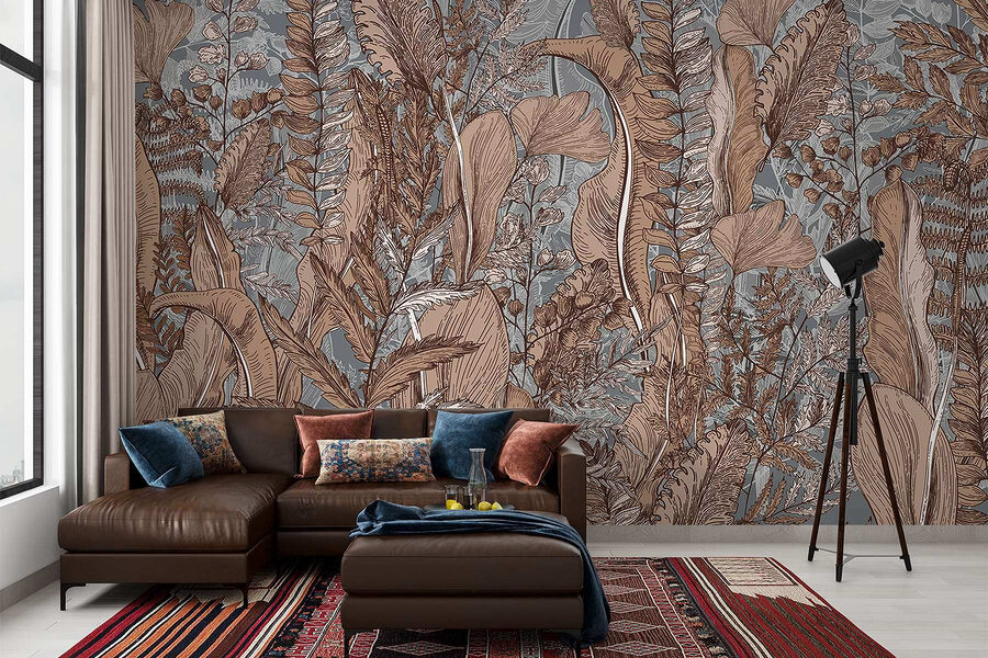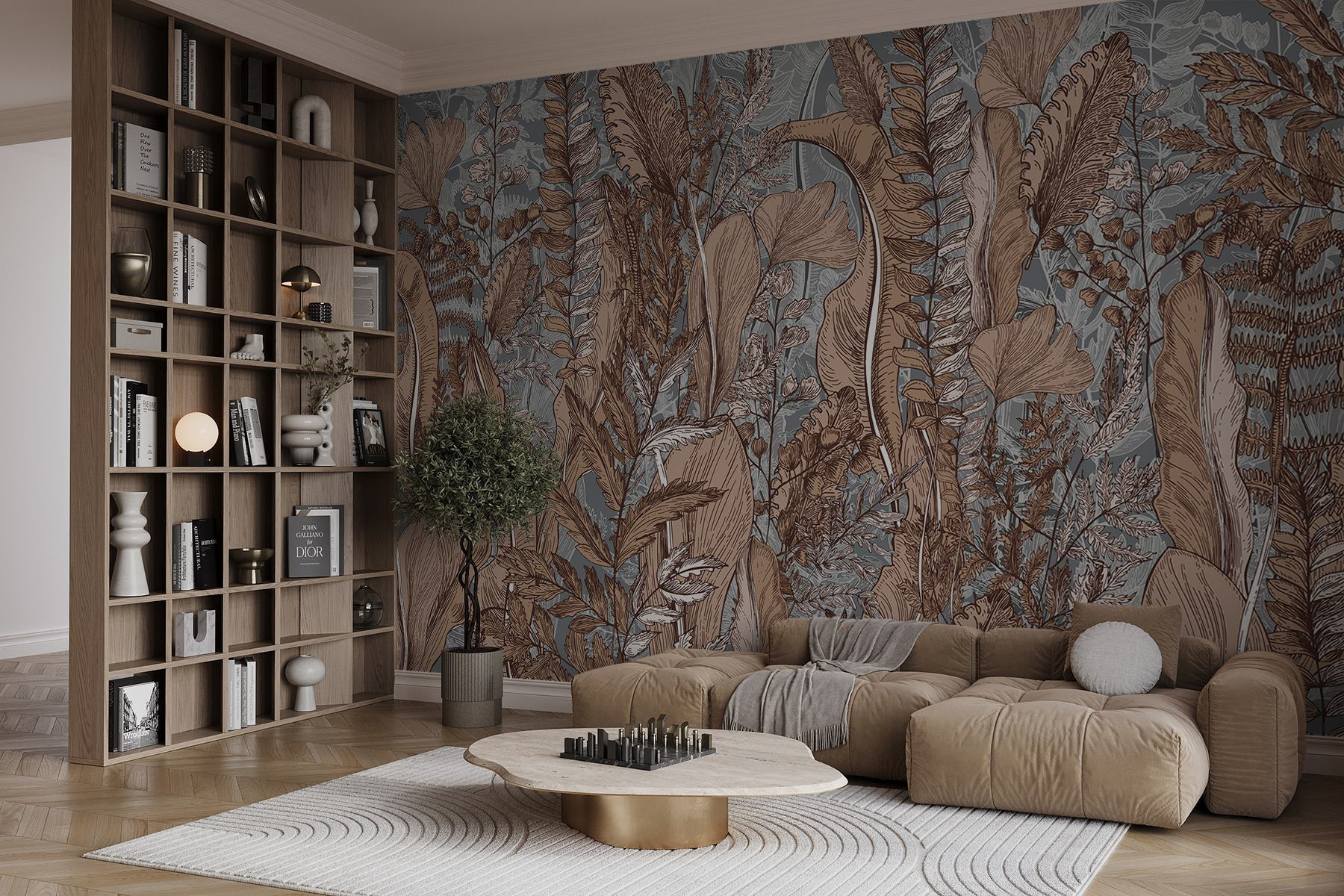 Transform your space with “Nature’s Beauty in Earthy Tones,” a wall mural that feels like a gentle hug from Mother Nature herself. This design weaves together intricate plants in warm browns and soft greens, bringing a soothing vibe to any room. Imagine stepping into your home after a hectic day, greeted by this lovely forest of leaves. Suddenly, it’s not just a wall—it’s an escape, a mini-retreat right in your living room! Perfect for those fond of earthy decor or just looking to add a splash of calm, it’s a conversation starter that whispers elegance. Trust me, it’s easier than convincing your cat that the wall isn’t a window!
