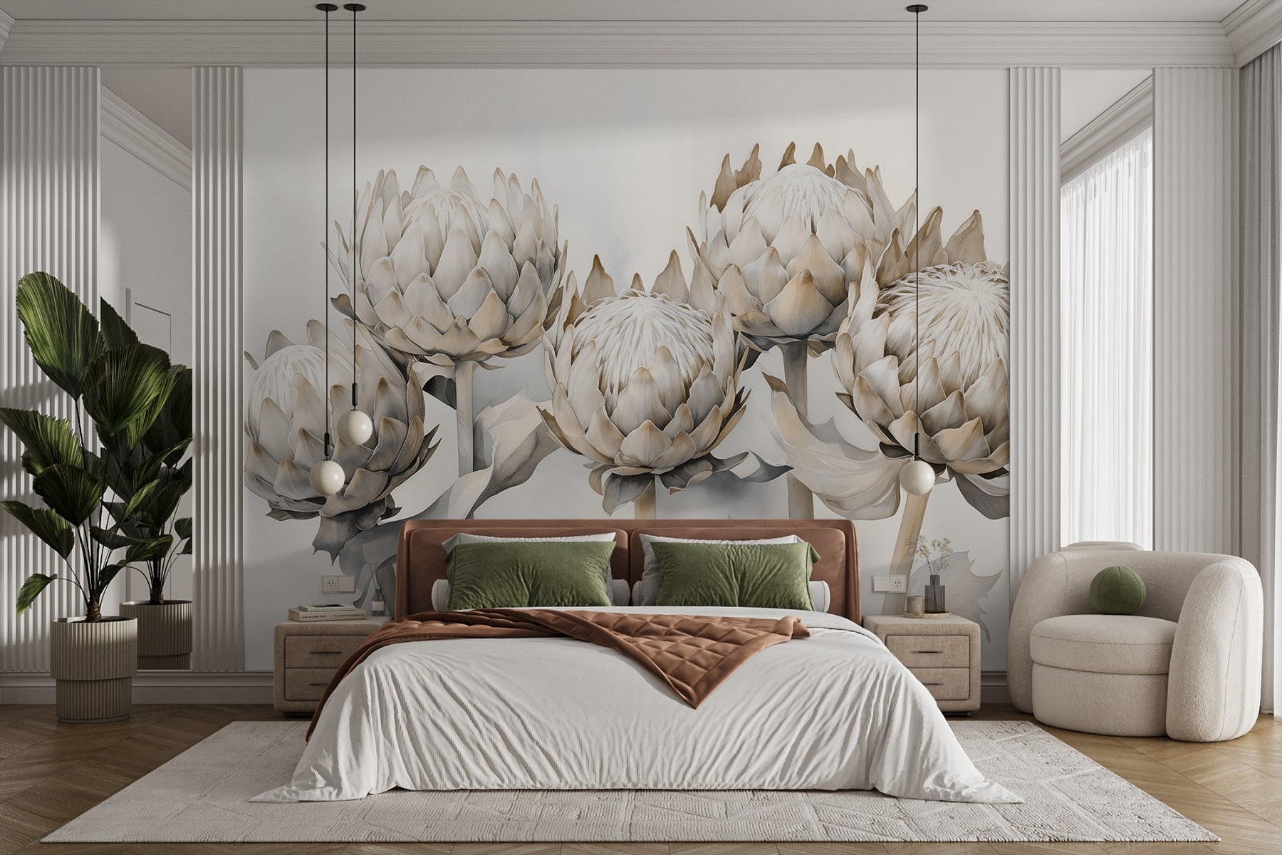 Transforming a space with the “Group of Artichokes with Leaves” mural feels like bringing a garden inside—without the dirt. This stunning design captures the beauty of artichokes in a soft, subtle palette that’s both earthy and elegant. Imagine sipping coffee while soaking in the gentle curves and textures that almost pop off the wall. It’s like nature’s artwork, just waiting to spark a conversation. Perfect for a cozy nook or a serene dining area, it adds a touch of sophistication and warmth. Plus, it’s a unique nod to those who appreciate the quirky side of flora. Who wouldn’t want artichokes as their home’s charming backdrop?