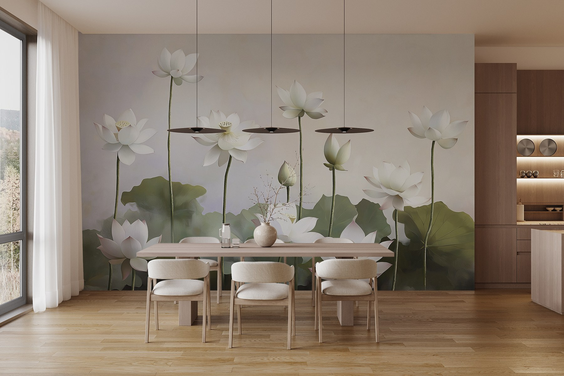 Transform any space into a serene garden escape with this stunning wall mural featuring a delicate group of white flowers. It’s like having nature’s calm right on your wall—no watering required! Picture this: you walk into the room, and bam, you’re greeted by a soft, dreamy sight that instantly soothes the soul. The elegant flowers rise gracefully, their petals whispering stories of tranquility. Perfect for a living room or a cozy reading nook. Imagine curling up with a good book, and feeling like you’re in a peaceful oasis. This mural isn’t just decor—it’s an experience. Dreamy, right?