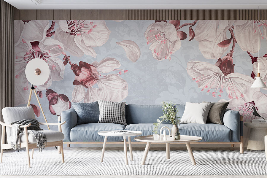 Transform any room into a serene escape with “Delicate Blossoms in Soft Hues.” This mural whisks you away to a gentle Japanese garden, where soft pink and white flowers bloom against a calming blue backdrop. Imagine sipping tea, surrounded by this dreamy scenery—it’s like an instant mood booster! Perfect for living rooms, bedrooms, or that little nook you just can’t figure out. The floral details feel like they might just float off the wall, inviting a soft breeze and a touch of elegance. Who wouldn’t want to wake up to this kind of beauty every day?