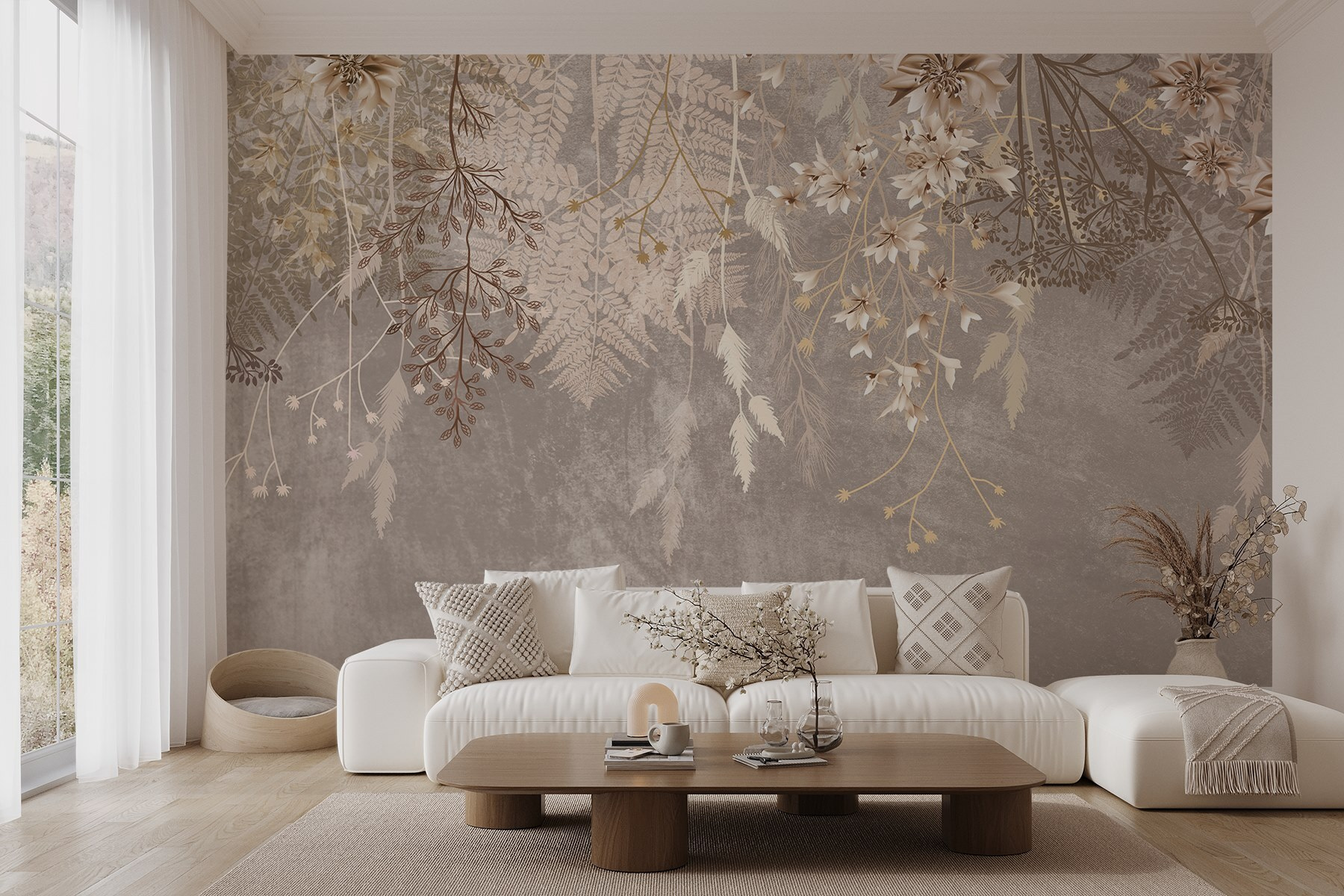 Bring a breath of fresh air into your space with the Delicate Floral Arrangement Overhead mural. It’s like a gentle garden hug that warms the soul without needing a green thumb. Picture this: lounging in your favorite chair, coffee in hand, wildly admiring the soft petals and flowing leaves that seem to float above. This serene mural adds just the right touch of elegance and whimsy to any wall, sparking conversations—or just daydreams. Perfect for those moments when life feels chaotic; it’s a subtle reminder that beauty can be as simple as nature itself.