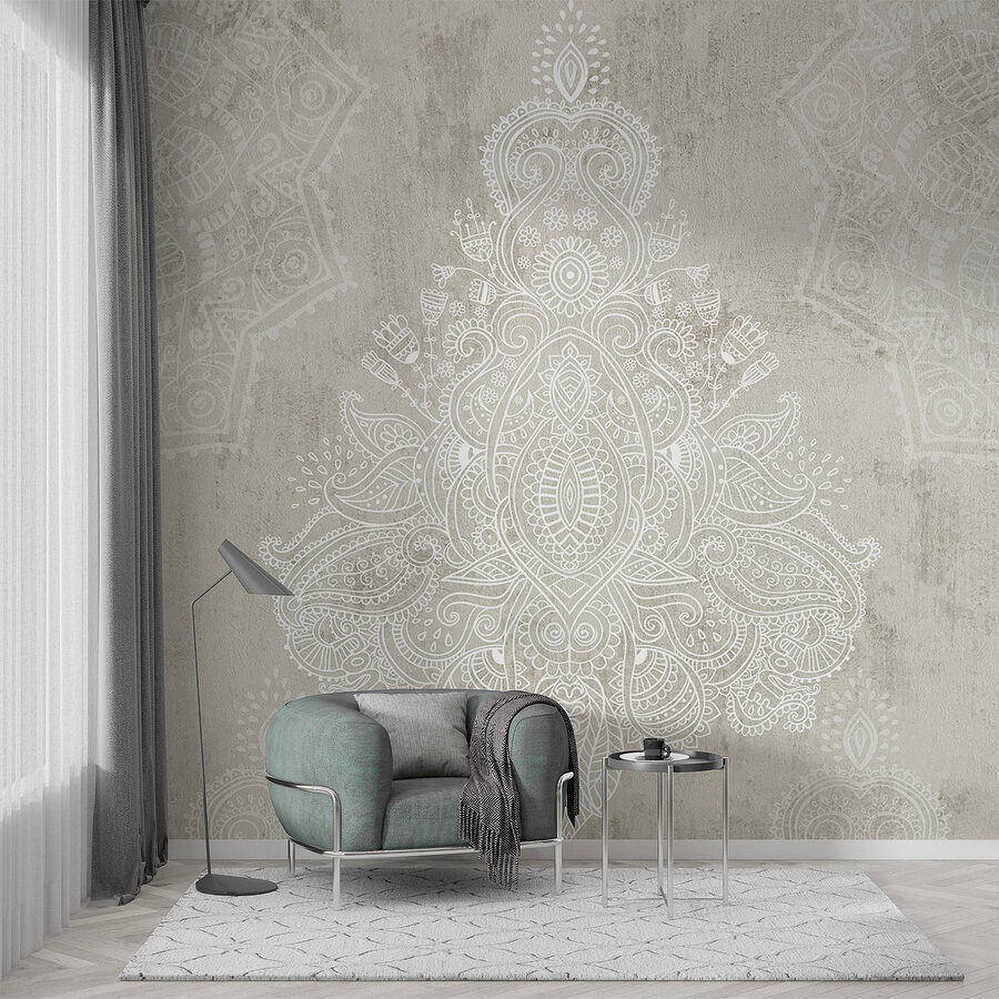 Transform a plain wall into a storybook of art with this stunning mural featuring a lovely white and grey pattern. It feels like stepping into a dream—soft, sophisticated, and just the right amount of bold. Imagine sipping coffee in a cozy nook, the intricate designs playing tricks on the eye, whispering tales of distant lands. Perfect for those who want their space to feel both tranquil and vibrant, it’s like wearing a comfy sweater with a touch of flair. Whether it’s a dining room or a quiet corner for reading, this mural adds that sprinkle of magic. Who wouldn’t want to chat with a wall that has more personality than some guests?
