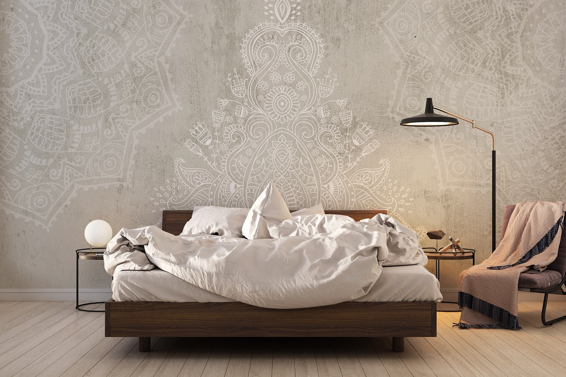 Transform a plain wall into a storybook of art with this stunning mural featuring a lovely white and grey pattern. It feels like stepping into a dream—soft, sophisticated, and just the right amount of bold. Imagine sipping coffee in a cozy nook, the intricate designs playing tricks on the eye, whispering tales of distant lands. Perfect for those who want their space to feel both tranquil and vibrant, it’s like wearing a comfy sweater with a touch of flair. Whether it’s a dining room or a quiet corner for reading, this mural adds that sprinkle of magic. Who wouldn’t want to chat with a wall that has more personality than some guests?