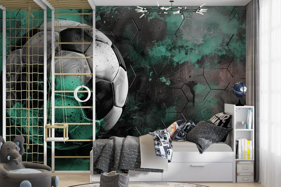 Transform your space into a soccer lover’s dream with this vibrant wall mural featuring a classic football on a striking green and black background. The colors pop, making it feel like the game’s just moments away. Imagine stepping into a room and instantly feeling the thrill of the pitch, the energy surging through you. Perfect for a game room, man cave, or kids’ bedroom—it’s sure to spark conversations and maybe even a friendly debate about the best players. And hey, who wouldn’t want a piece of art that’s equal parts sport and style? Picture this: friends over, snacks in hand, and everyone getting a little misty-eyed over that winning goal. Perfect touch for any fan!