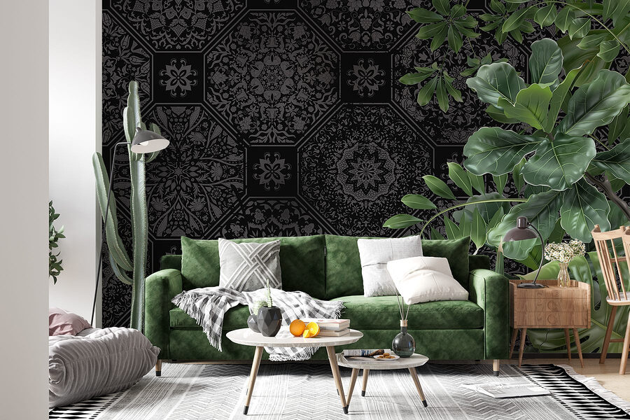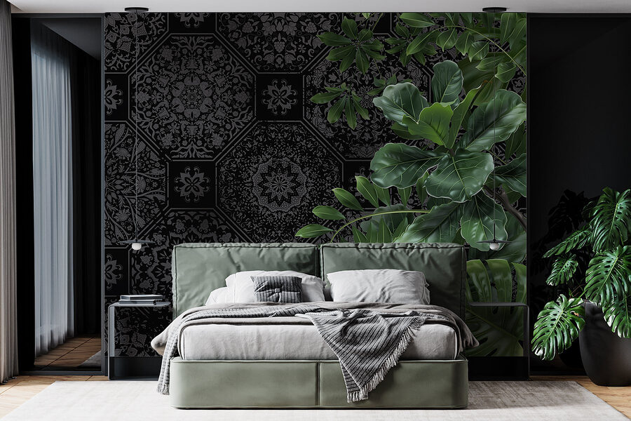 Step into a world where elegance meets a touch of nature. This mural, featuring stunning black and grey patterns accented with vibrant green leaves, transforms any space into a calming retreat. Imagine sipping coffee in your cozy nook, surrounded by this striking design that whispers sophistication while celebrating the great outdoors. It’s like bringing a mini jungle vibe right into your living room—only without the watering can! Perfect for creating an eye-catching feature wall or simply adding a splash of personality to your home. It’s more than just decor; it’s an experience waiting to unfold. Your walls called—they want to dress up too!