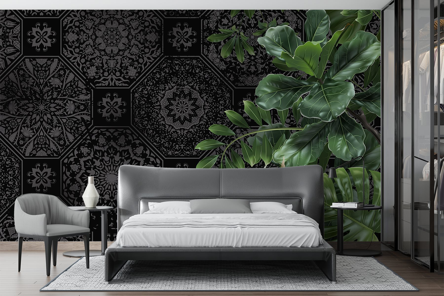 Step into a world where elegance meets a touch of nature. This mural, featuring stunning black and grey patterns accented with vibrant green leaves, transforms any space into a calming retreat. Imagine sipping coffee in your cozy nook, surrounded by this striking design that whispers sophistication while celebrating the great outdoors. It’s like bringing a mini jungle vibe right into your living room—only without the watering can! Perfect for creating an eye-catching feature wall or simply adding a splash of personality to your home. It’s more than just decor; it’s an experience waiting to unfold. Your walls called—they want to dress up too!