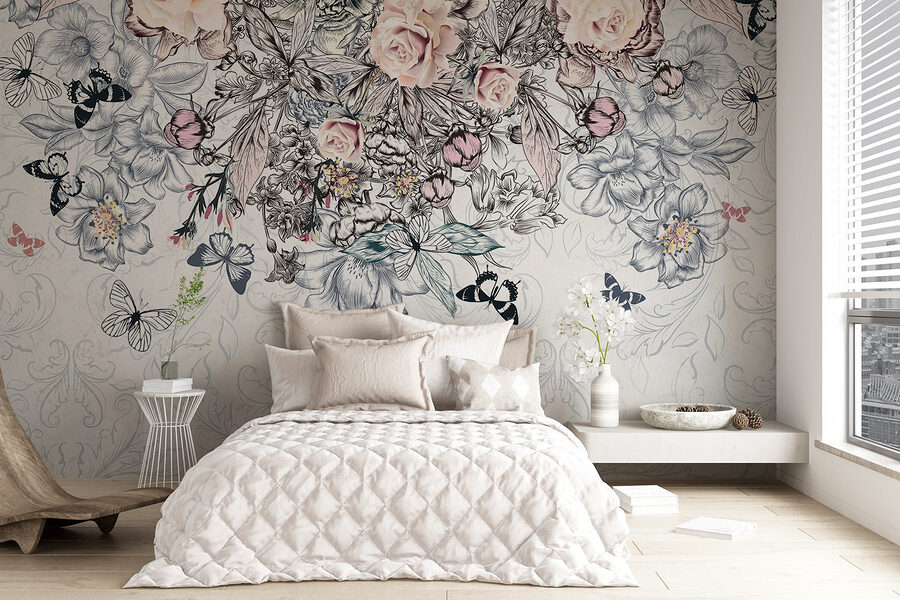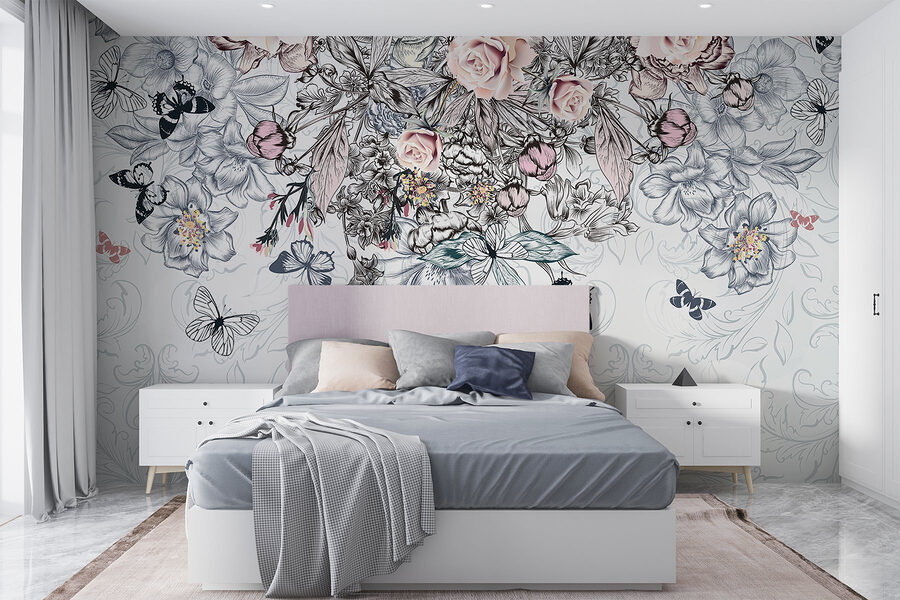 Imagine stepping into a serene garden where flowers and butterflies frolic together in perfect harmony. This mural, featuring a whimsical mix of blooms and fluttering friends, brings that enchanting vibe straight to your walls. The soft pastel roses and vibrant butterflies dance against a gentle backdrop, instantly brightening any room. It’s like having your own little slice of nature right at home. Whether it’s your living room or a cozy reading nook, this mural whispers “welcome,” inviting warmth and creativity. Perfect for those days when you just want to escape the ordinary and get lost in beauty. Plus, who wouldn’t want to feel like they’re in a fairytale, even if it’s just for a moment? Embrace the joy of nature and let these lovely designs inspire your space.