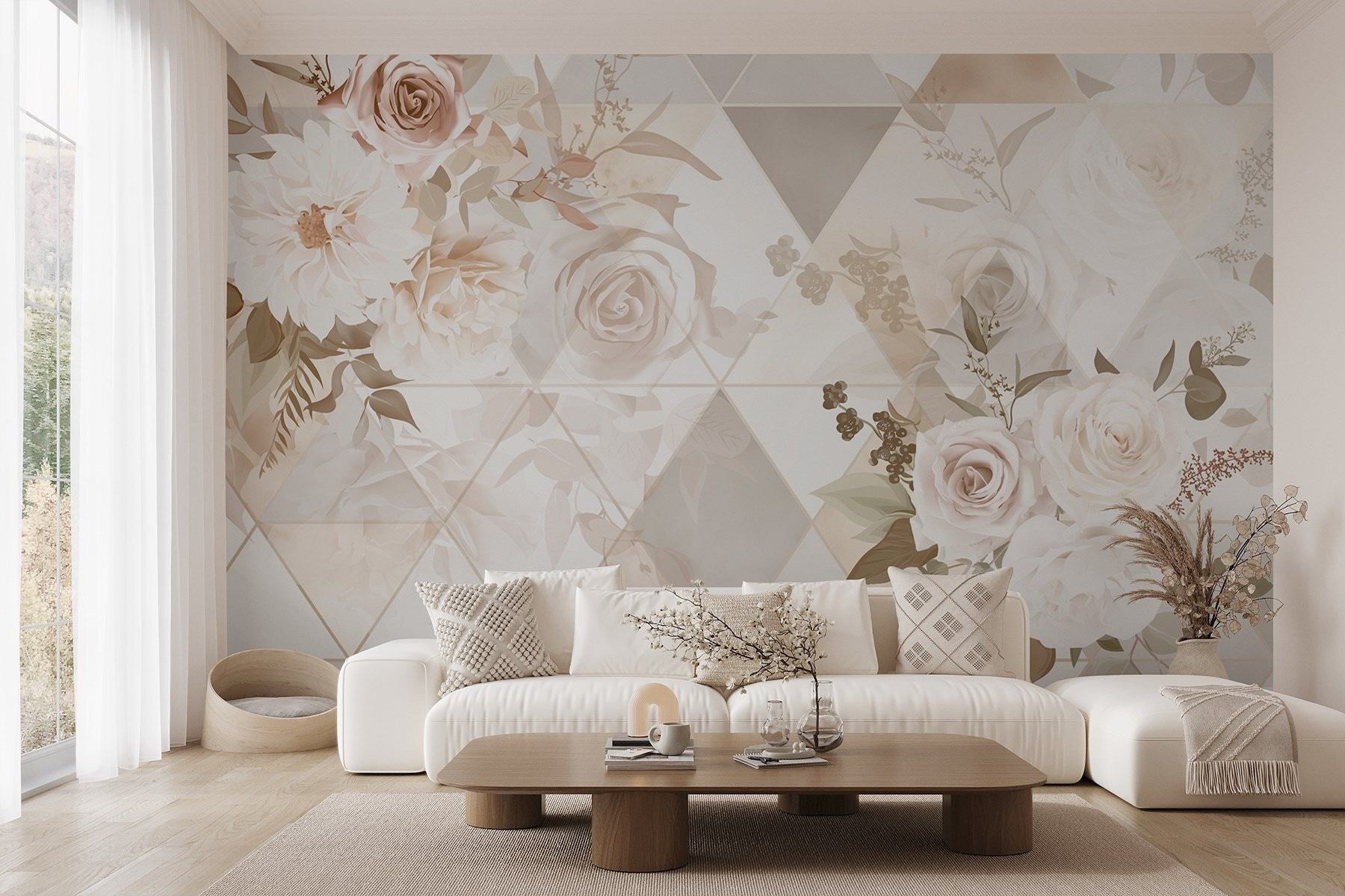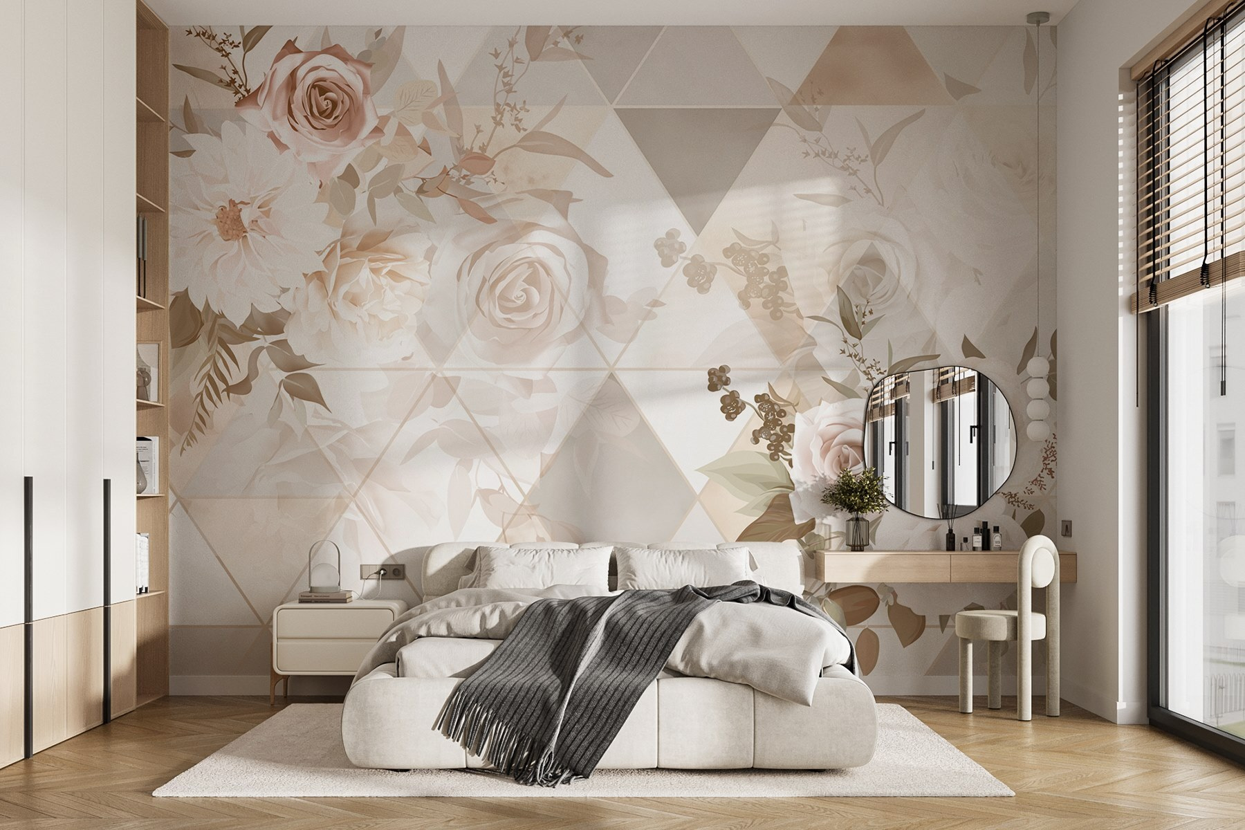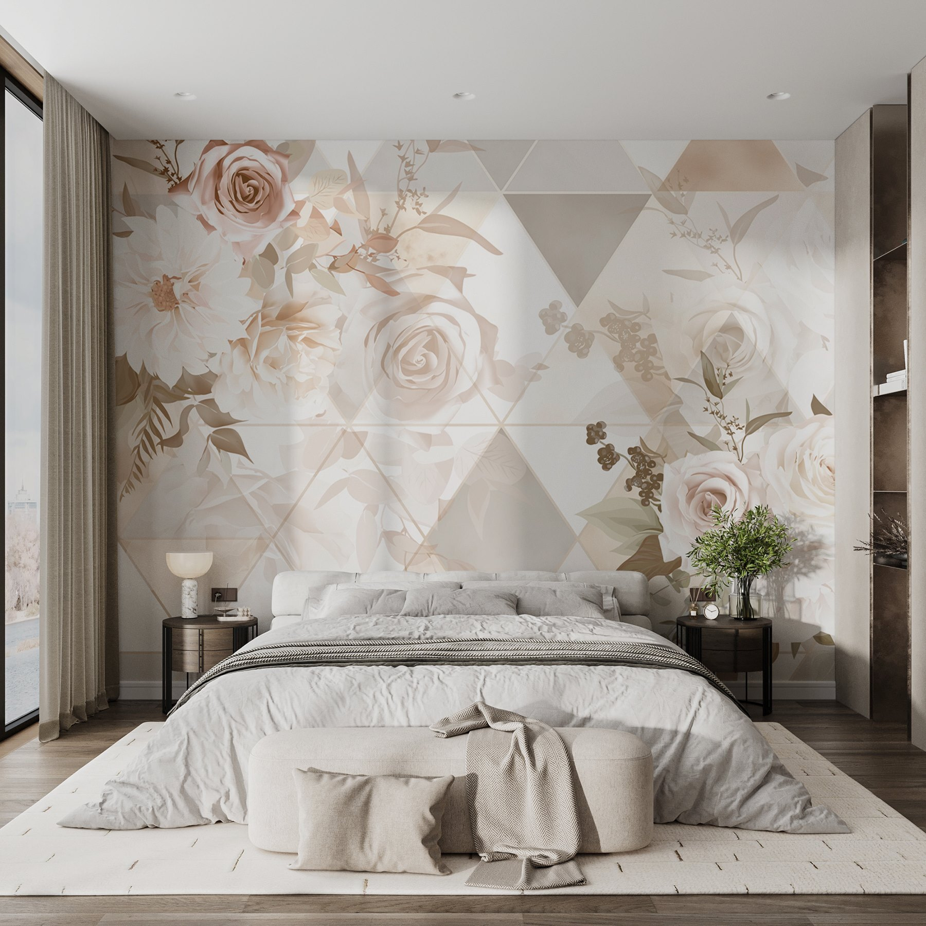 Looking to add a splash of elegance to your space? This wall mural is the ticket! Picture lush, watercolor blooms paired with trendy triangles, all in soft, dreamy tones. It’s like bringing a garden indoors without all the messy dirt—score! Imagine waking up to this beauty every morning; it’s sure to brighten even the gloomiest of days. Whether it’s a cozy reading nook or a lively dining room, it’s got a way of making any spot feel special. Perfect for those who appreciate art but don’t want to fuss with frames. Plus, who could resist those peonies? They’re practically begging for a cheerful cup of tea beside them!