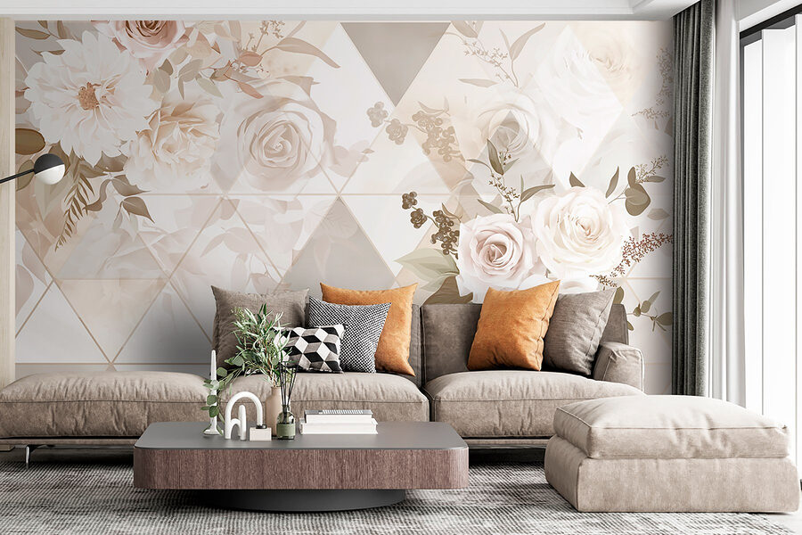 Looking to add a splash of elegance to your space? This wall mural is the ticket! Picture lush, watercolor blooms paired with trendy triangles, all in soft, dreamy tones. It’s like bringing a garden indoors without all the messy dirt—score! Imagine waking up to this beauty every morning; it’s sure to brighten even the gloomiest of days. Whether it’s a cozy reading nook or a lively dining room, it’s got a way of making any spot feel special. Perfect for those who appreciate art but don’t want to fuss with frames. Plus, who could resist those peonies? They’re practically begging for a cheerful cup of tea beside them!