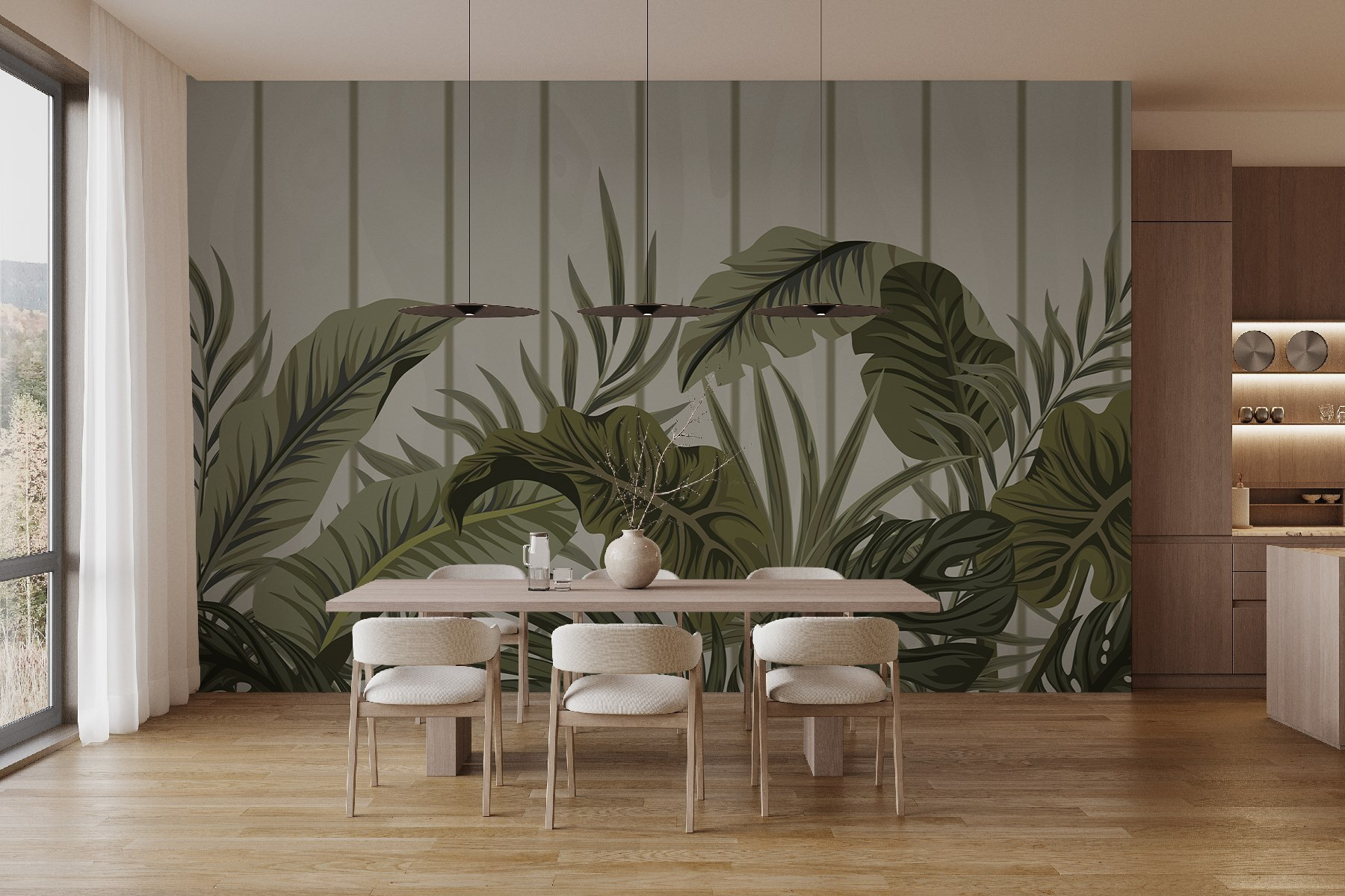 Imagine walking into a room that feels like a tropical hideaway, even if it’s just your living room. This wall mural, “Lush Greens Against a Wooden Backdrop,” does just that. It’s got that perfect blend of greenery and rustic charm, making it feel like a peaceful forest retreat. Just picture sipping your morning coffee while surrounded by these vibrant leaves—nature’s hug, right? The subtle hues and textures take the edge off a long day, almost like bringing a slice of the outdoors inside. Whether it’s a cozy reading nook or that one wall that needs a little love, this mural brings a fresh vibe. It’s a lovely touch for nature lovers or anyone just needing a little escape. Who wouldn’t want their walls to feel flirty and fun?