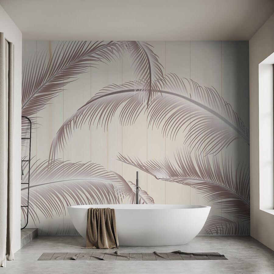 Transform any room into a serene escape with the “Natural Elegance in Soft Tones” wall mural. Imagine stepping into your space and being greeted by delicate palm leaves that seem to rustle gently in a tropical breeze. This serene design, featuring soft hues against a subtle, wooden backdrop, radiates calm. It’s perfect for setting a relaxed vibe—think cozy evenings with a good book or casual get-togethers. Guests will find themselves daydreaming of sandy beaches. Who wouldn’t want that? It’s like bringing a slice of paradise right to your walls!