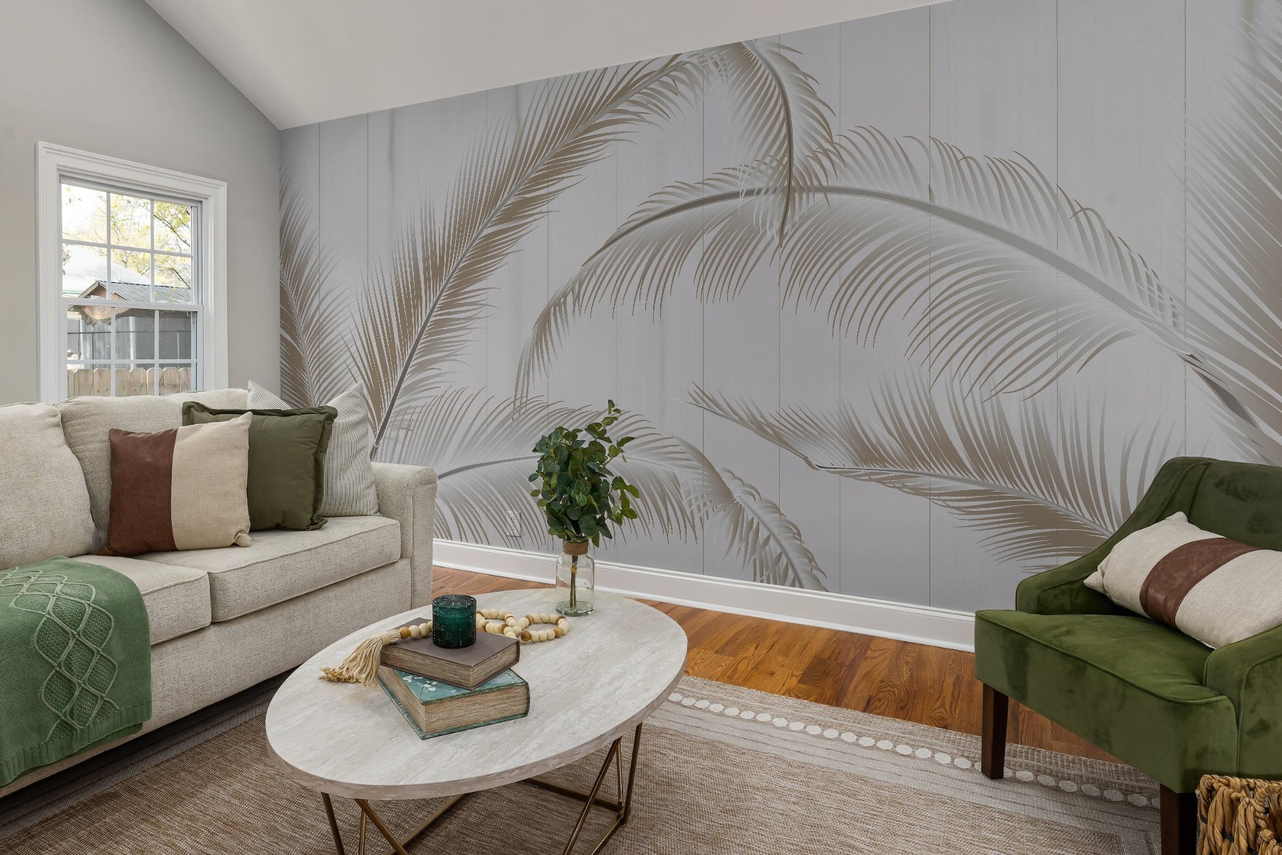 Transform your space with this stunning wall mural featuring serene palm leaves on a soft background. It’s like inviting a gentle breeze indoors, whispering tales of tropical getaways without ever having to pack a suitcase. Imagine sipping your morning coffee while soaking in the calming vibes, or enjoying a cozy evening with friends, all while surrounded by nature’s best. The neutral tones seamlessly blend with various decor styles, making it perfect for that chic living room or a relaxing bedroom retreat. It’s not just a mural; it’s a mini vacation right on your wall! So go ahead, let those palm leaves bring some tranquility to your home. Cheers to lush living!