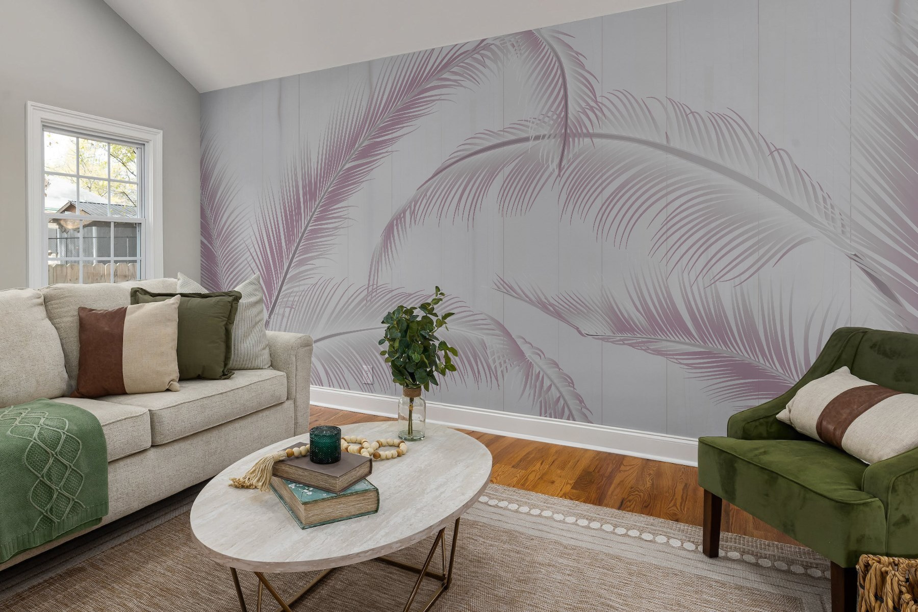 Transform a room into a tropical oasis with this stunning wall mural featuring graceful feathers on a crisp white background. It’s like bringing a piece of nature indoors—without the hassle of watering plants! Imagine waking up to that cool, serene vibe every day. Perfect for living spaces or a cozy reading nook, it’s bound to spark conversations. Plus, the soft tones can seamlessly blend with any decor. Hang it up, grab a drink, and let the daydreaming begin. Who could resist a little island escape in their own home?