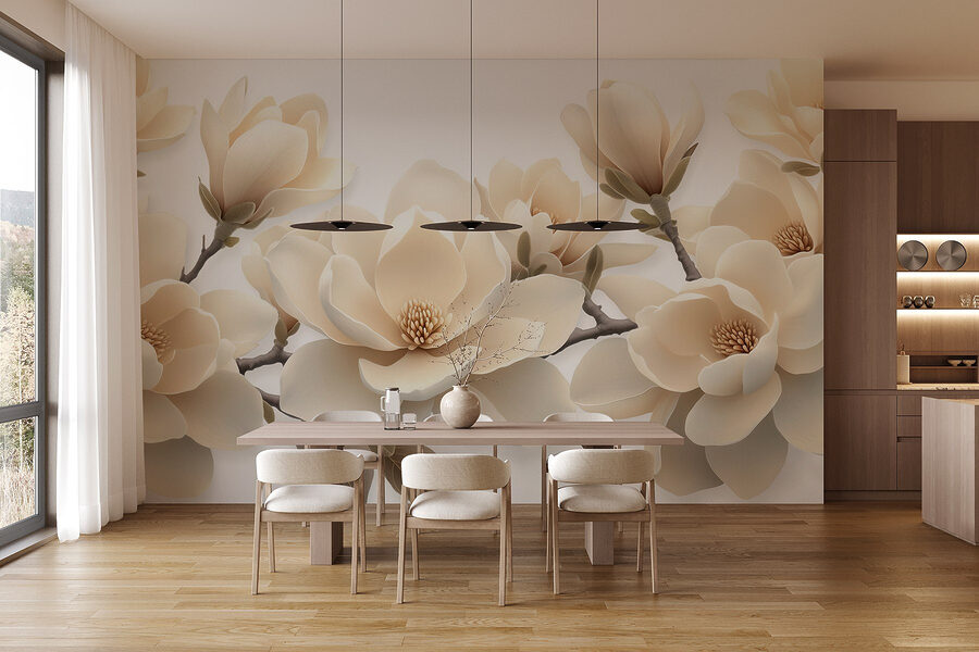 Transform your space with the “White Flowers on a Branch” mural, where nature invites itself right into your home. Picture this: soft, creamy blooms that seem to whisper sweet nothings as they sway in the gentle breeze of your favorite room. It’s like having a garden in your living room—minus the weeding!