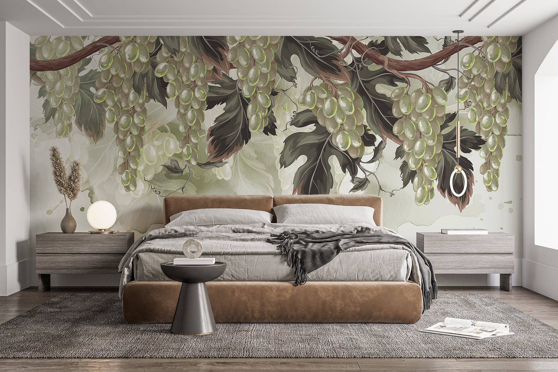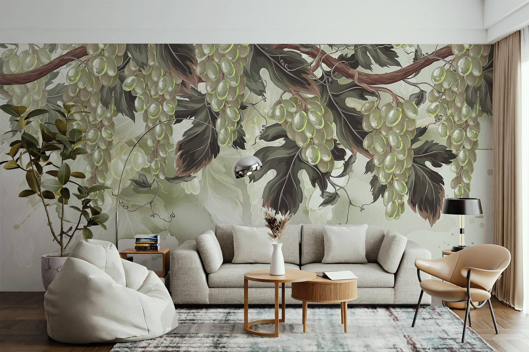 Transform your space with a wall mural that feels like a vineyard escape! “Bunch of Grapes on a Vine” brings leafy charm and a hint of fertility right into your home. Imagine walking into a room and being greeted by these luscious greens, making you feel like you’ve just stepped into a sunlit orchard. It’s like having your personal oasis, where the air smells faintly of earth and sweetness. Perfect for a kitchen or dining area, this mural could stir up delicious memories of wine-tasting trips or lazy summer picnics. Just be careful; it might inspire some spontaneous grape-themed dinner parties! Plus, everyone loves a good chat starter—this will definitely have guests admiring the view.