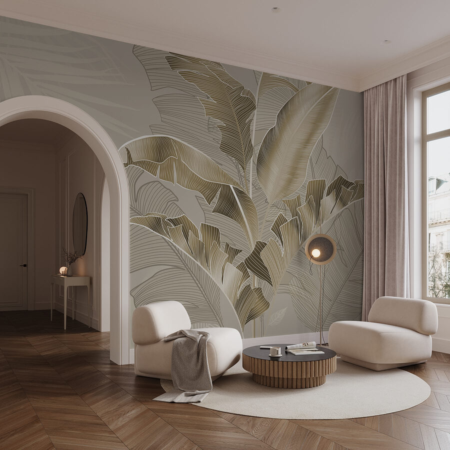 Imagine stepping into a serene jungle where elegance meets nature. This wall mural, “Elegant Leaves in Soft Tones,” invites a touch of tropical flair right into the heart of your home. It’s like having a little piece of paradise—no passport needed! The gentle hues and delicate leaf designs create a calming vibe, perfect for a cozy reading nook or a chic living room.