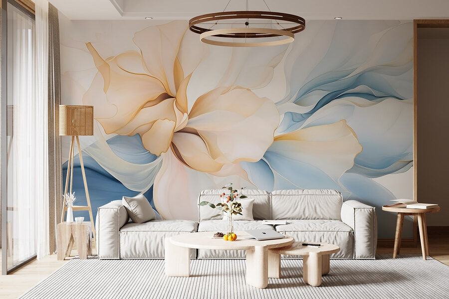 Transform your space with “Soft Hues in Delicate Floral Dance,” a wall mural that whispers elegance. Imagine walking into a room and feeling an instant lift, as if you’re surrounded by a gentle breeze of pastel petals fluttering around you. This mural blends soft blues and warm creams—like a fresh spring day captured on your wall. Perfect for that cozy reading nook, or even the living room, where friends gather and laugh over coffee. It’s like bringing a garden indoors, minus the allergies. Let those floral vibes set a serene mood, inviting peace and creativity into every corner. Can’t you just see it now?