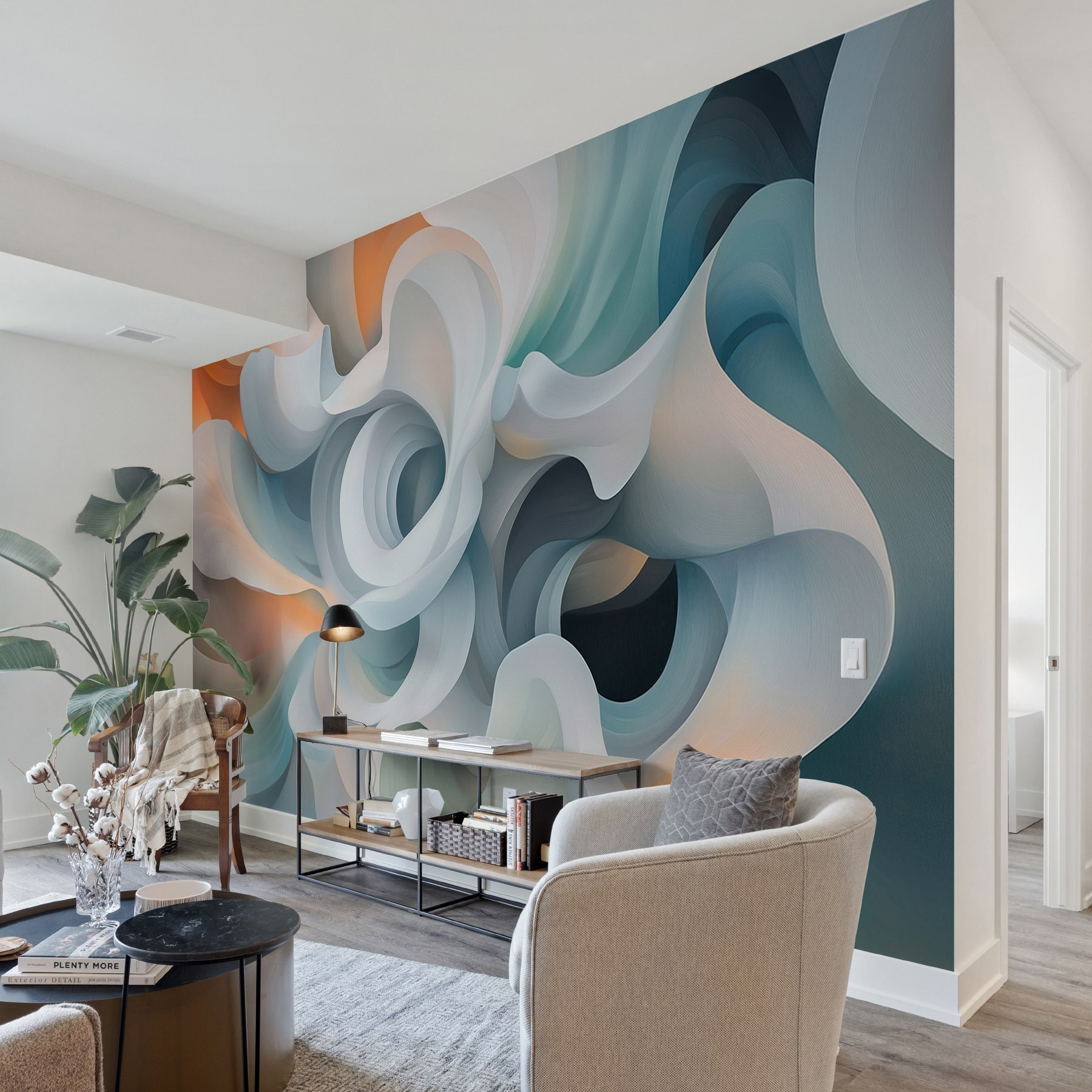 Transform your space with this stunning wall mural titled “Abstract Swirls in Soft Hues.” This piece brings a splash of calm and creativity all at once—think of it as a gentle hug for your walls. The soft swirl of colors dances together, pulling you in like a cozy blanket at the end of a long day. Imagine sipping coffee and just getting lost in those dreamy patterns; it’s perfect for creating a serene atmosphere in a bedroom, office, or even a peaceful reading nook. Whether you’re channeling your inner artist or just in need of a pop of flair, this mural works wonders. Each glance feels like stepping into a tranquil dream—who wouldn’t want that? Seriously, it’s like bringing a slice of a peaceful sunset indoors.