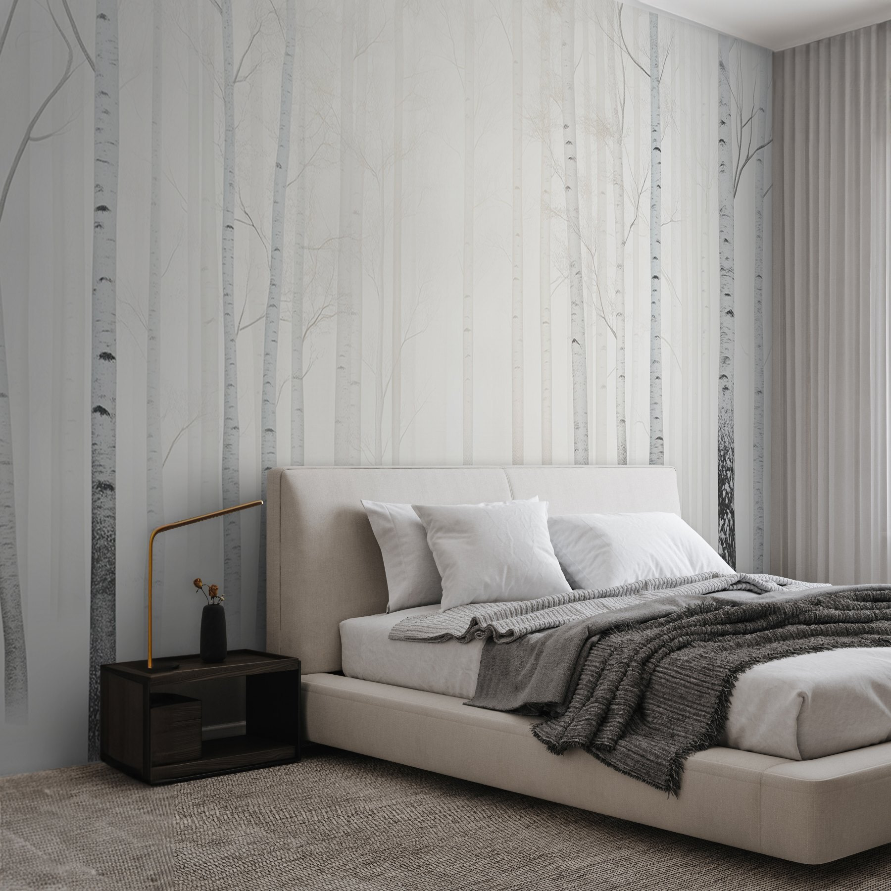 Transform a wall into a serene snowy escape with this mural featuring a tranquil forest of birch trees. The soft whites and gentle greys create an almost dreamlike atmosphere, making it feel like a stroll through winter wonderland, sans the chill! Imagine sipping cocoa, cozied up on the couch, while this calming scene wraps around you. Perfect for any room that needs a little touch of nature, it invites daydreams and peaceful vibes. Who needs a snowy getaway when this beauty can fill the space? It’s wall art that whispers comfort and tranquility—just what a home needs!