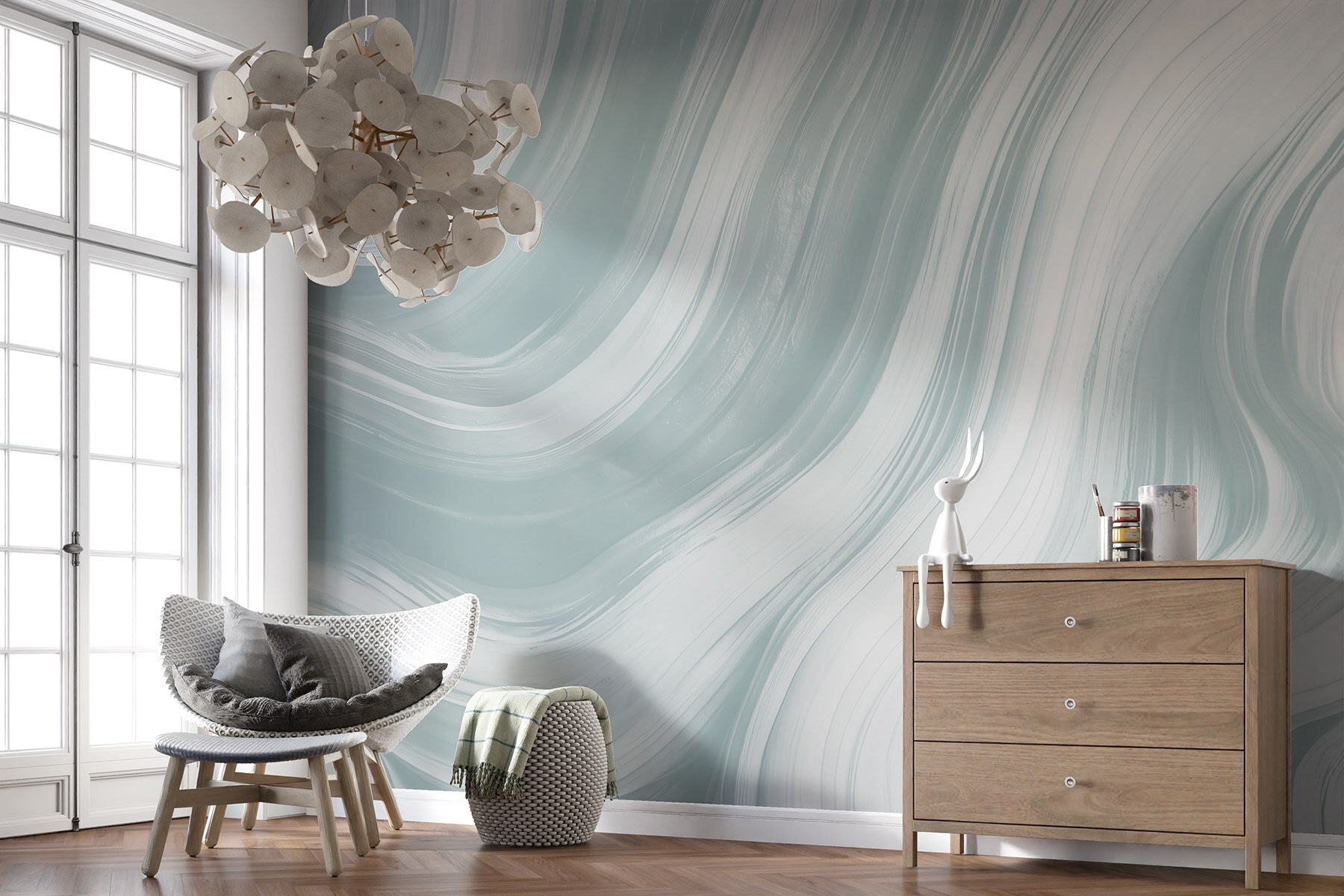 Transform any room with this stunning wall mural featuring enchanting white and grey wavy lines. It’s like a gentle breeze of creativity sweeping across your space, inviting calm and serenity to your life. Perfect for a cozy reading nook or a vibrant living room, this design adds a dreamy touch that feels both modern and timeless. Imagine curling up with a good book, surrounded by these soft waves, and feeling your worries drift away. Plus, it’s sure to spark conversation—just wait for your friends to ask where you found such a unique piece!