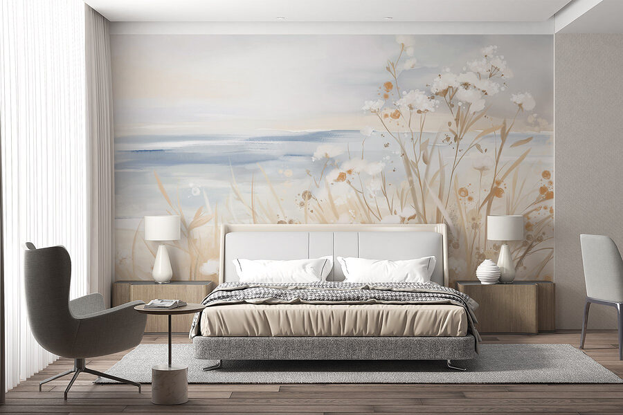 Transform your space with this dreamy wall mural featuring enchanting blooms and soft grasses. Imagine waking up to a serene scene, where nature seems to whisper sweet nothings. The gentle brushstrokes blend warm hues and cool tones, creating an effortless flow that feels both calming and uplifting. Perfect for a cozy living room or a creative studio, this mural can spark inspiration or simply provide a peaceful backdrop for sipping morning coffee. It’s like bringing a meadow indoors—without the sneezes from pollen. Embrace this floral fantasy and let your walls tell a story of tranquility and beauty.
