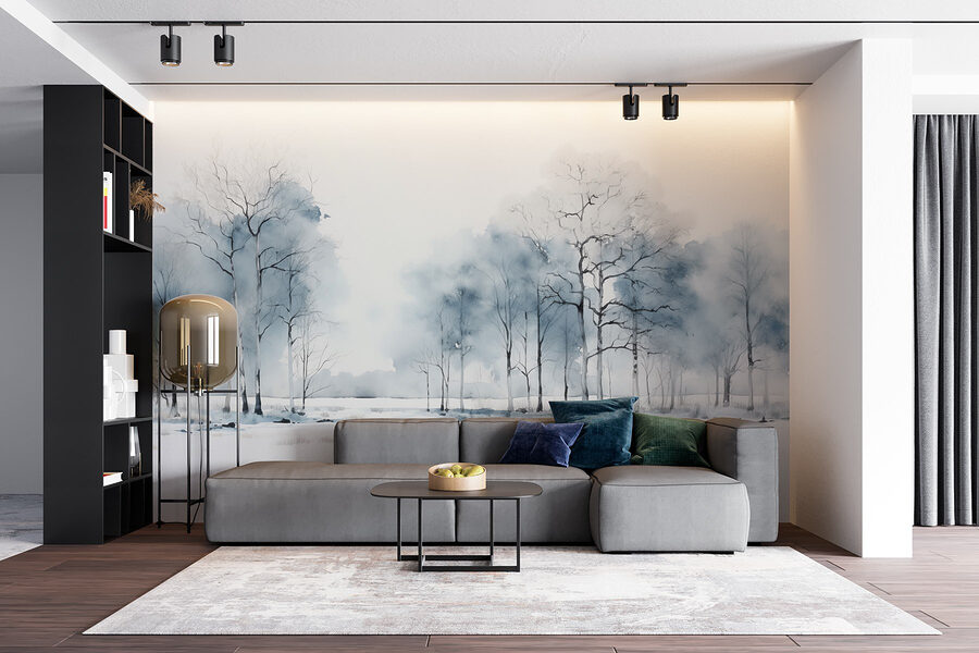 Transform any wall into a serene escape with this enchanting mural of a snowy field dotted with trees. Picture this: on a chilly evening, you cozy up with a book as this tranquil scene wraps around your space. The soft shades of blue and white create a calming atmosphere, making it perfect for relaxation or even some quiet contemplation. It’s like bringing a bit of winter magic indoors, without the cold toes! Whether you’re a nature lover or just looking to spark a conversation, this mural urges you to pause, breathe, and enjoy a little slice of peace right at home.