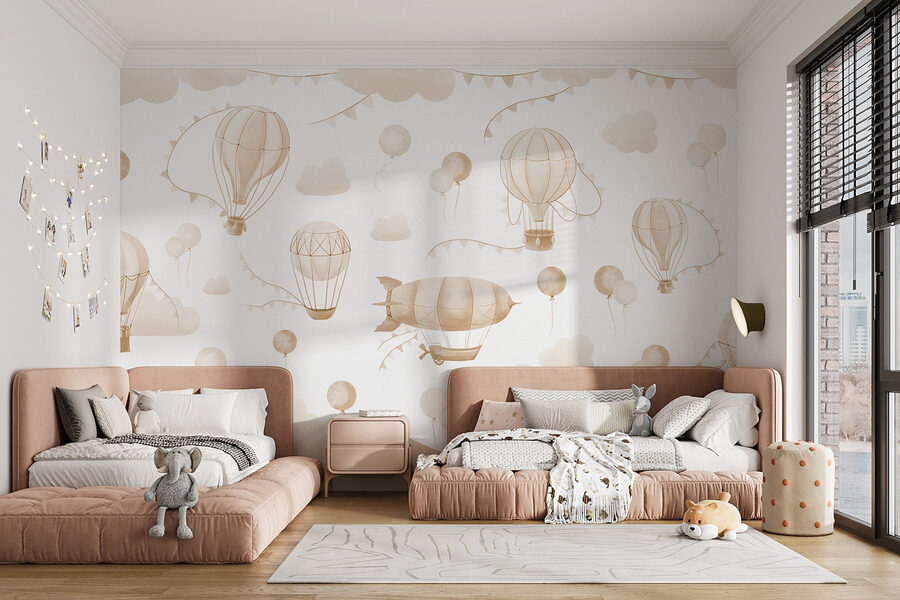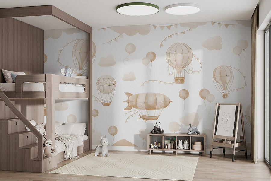 Transform any room with this enchanting mural of hot air balloons sailing over gentle mountains. Imagine sipping your morning coffee, gazing at whimsical balloons drifting lazily by. It’s like an invitation to daydream—no plane ticket required. The soft colors create a soothing atmosphere, making it perfect for a cozy living room or a child’s playful bedroom. Picture bedtime stories under this sky—adventures taking flight right from your walls. This mural doesn’t just decorate; it sparks joy and curiosity, adding a touch of wonder that lingers long after the day is done.