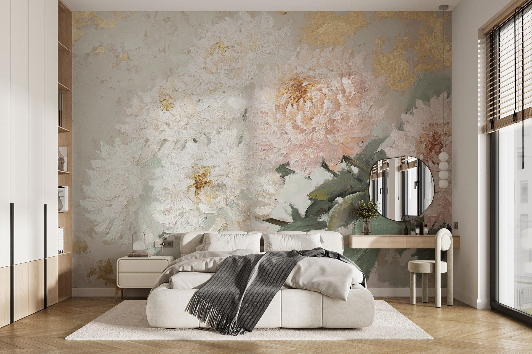 Transform any wall into a blooming paradise with this mural featuring delicate flowers on a soft white surface. Imagine walking into a room and feeling instantly cheered by these charming petals. It’s like bringing a bit of spring inside all year long, perfect for those days when the weather outside doesn’t quite match your mood. The subtle mix of soft colors whispers elegance without shouting for attention. Friends will definitely notice and might even compliment your keen eye for unique decor. Plus, who wouldn’t want to feel like they’re enveloped in floral bliss? It’s more than just a mural; it’s a daily reminder of beauty, growth, and the joy of nature right at home. Perfect for a living room, bedroom, or that cozy reading nook waiting for a touch of charm.