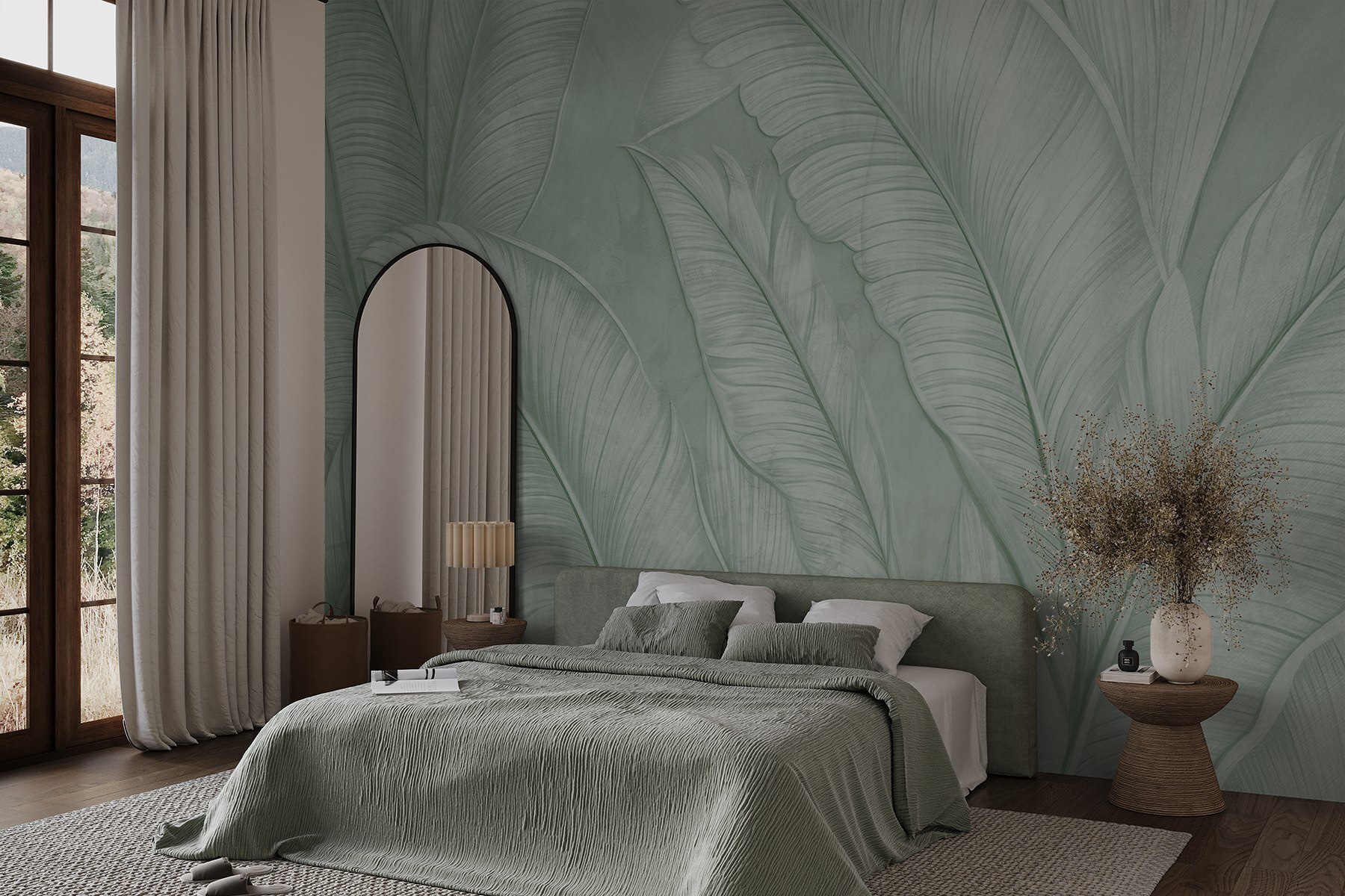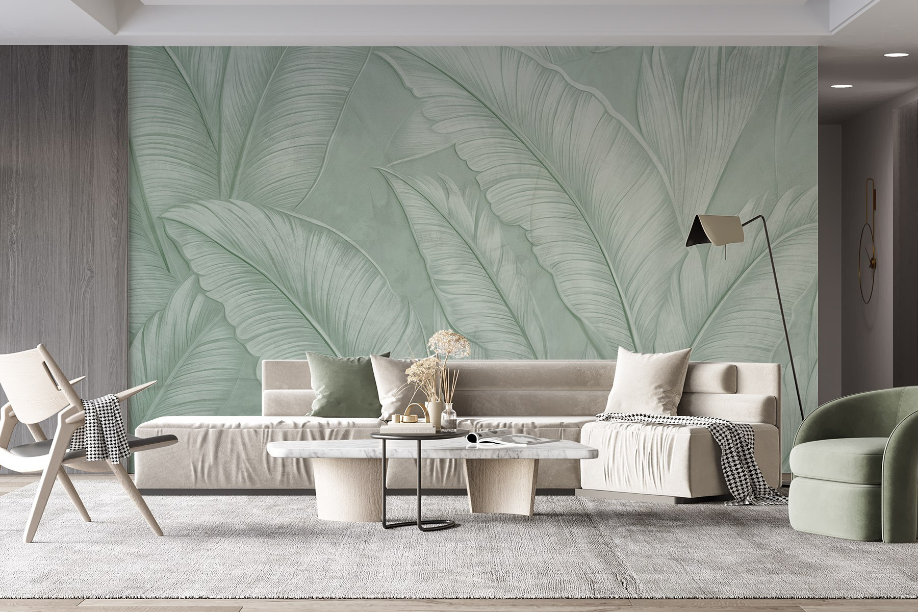 Transform your space into a tropical oasis with this stunning mural featuring soft green leaf patterns. It’s like bringing a slice of serenity right into your living room! Imagine curling up with a book while surrounded by these lush designs, making every moment feel like a mini-vacation. The gentle hues invite calm, brightening up corners that might feel a bit dull. Whether they’re gracing a cozy reading nook or a lively kitchen, these palm leaves whisper relaxation. Feel the vibe change—it’s nature’s charm at its finest! Perfect for anyone looking to infuse a touch of the tropics into their home. Who doesn’t want to feel like they’re on holiday every day?