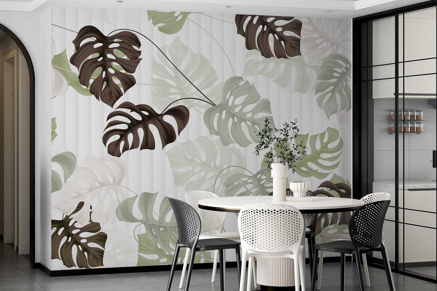 Transform any space with this stunning mural—a playful pattern of leaves dancing on a crisp white background. It’s like bringing a little slice of nature right into your home, minus the bugs and dirt. Imagine settling into your cozy corner, a warm cup of coffee in hand, and feeling that instant calm wash over you. The gentle greens and earthy browns are perfect for adding a splash of life without being too loud. It’s not just decoration; it’s an experience, a fresh breath in every corner. So why not let your walls tell a story? They might just inspire your next adventure!