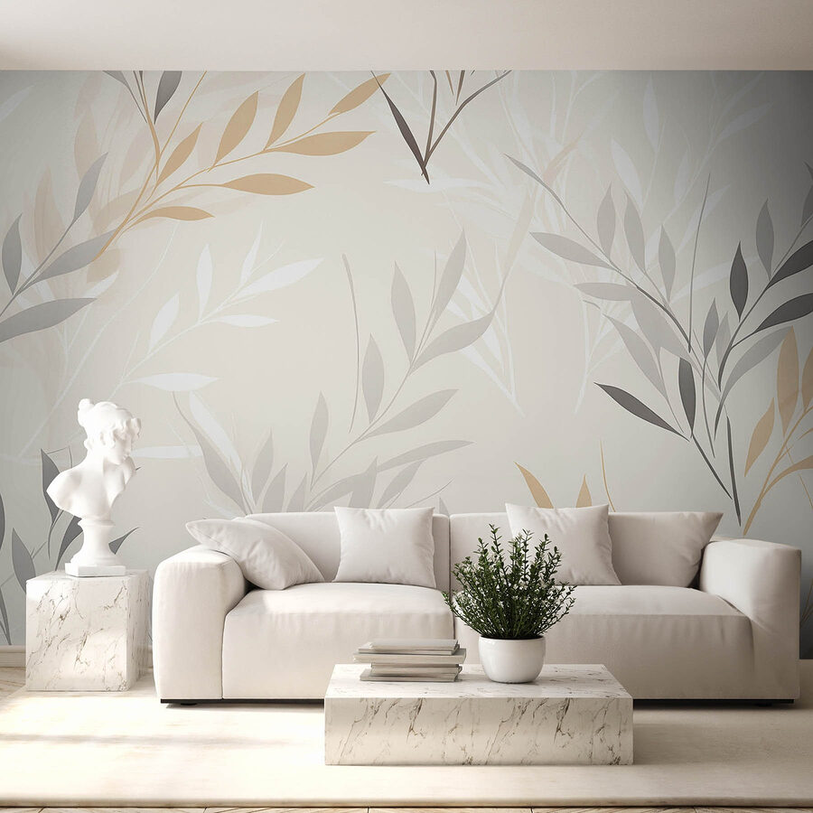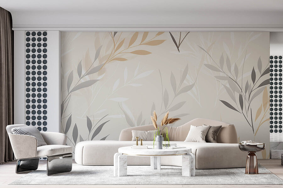Transform any room with this lovely wall mural featuring a delicate pattern of leaves dancing across a soft white background. It’s like bringing a bit of nature indoors without the dirt and watering can. The gentle hues of gray and sandy tones create a calming vibe, perfect for a cozy reading nook or a cheerful living room. Imagine curling up with a good book, basking in the warmth of your space as the leaves seem to sway in an imaginary breeze. It’s a lovely reminder of the outdoors, minus the mosquitoes! A true breath of fresh air for your walls.
