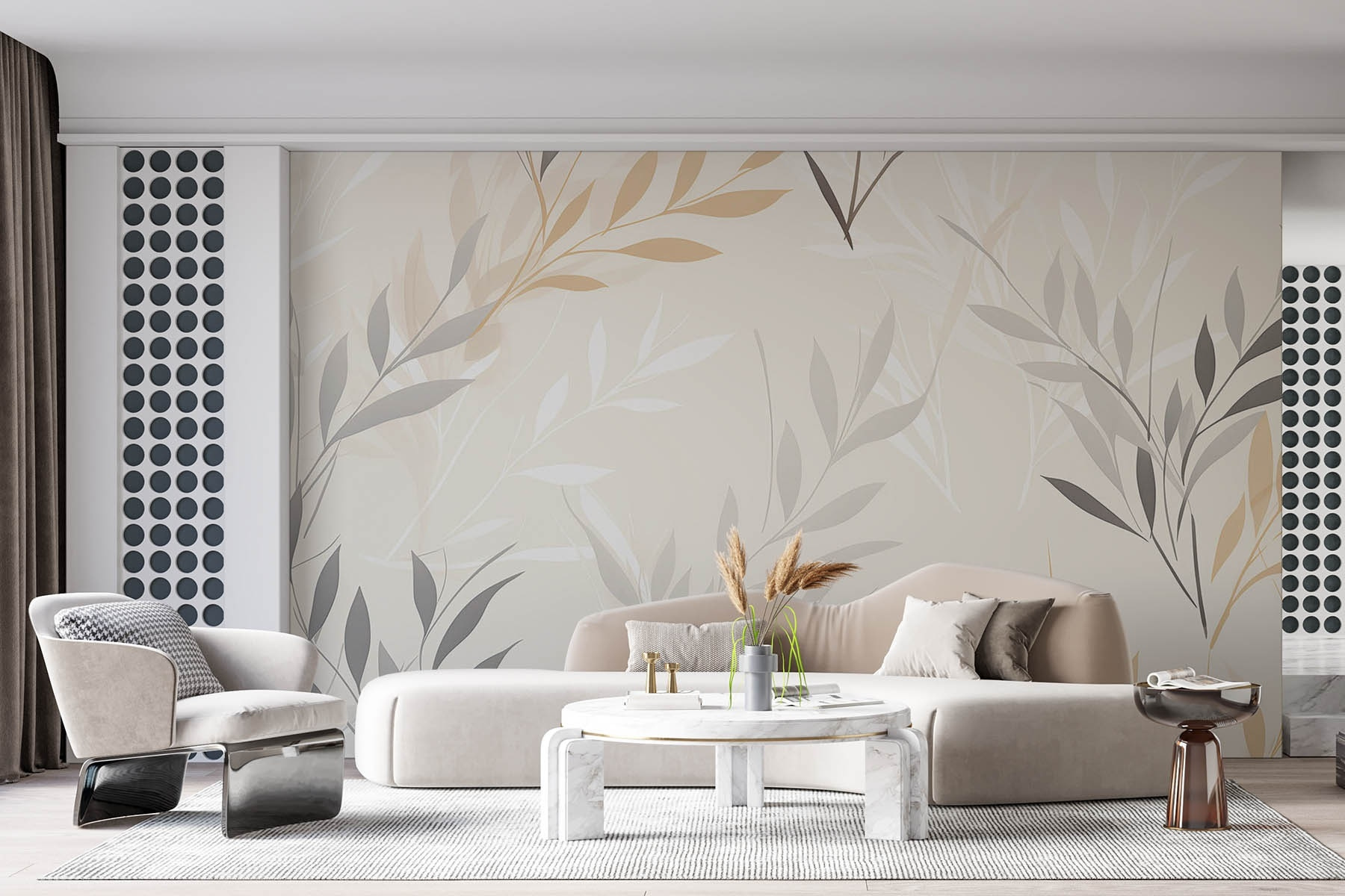 Transform any room with this lovely wall mural featuring a delicate pattern of leaves dancing across a soft white background. It’s like bringing a bit of nature indoors without the dirt and watering can. The gentle hues of gray and sandy tones create a calming vibe, perfect for a cozy reading nook or a cheerful living room. Imagine curling up with a good book, basking in the warmth of your space as the leaves seem to sway in an imaginary breeze. It’s a lovely reminder of the outdoors, minus the mosquitoes! A true breath of fresh air for your walls.