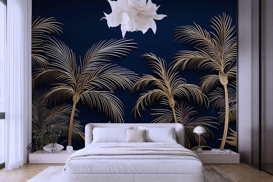 Transform your space with this stunning mural featuring elegant palms dancing against a deep blue backdrop. It’s like bringing a slice of tropical paradise right into your living room—without the humidity or mosquitoes. The rich, contrasting colors will have you dreaming of sandy beaches and warm breezes, even on the rainiest days. Imagine sipping a cold drink, lounging under these beautiful palms, and feeling instantly relaxed. This mural doesn’t just decorate; it invites a vibe, making any place feel more serene and inviting. Perfect for anyone looking to escape—at least visually!