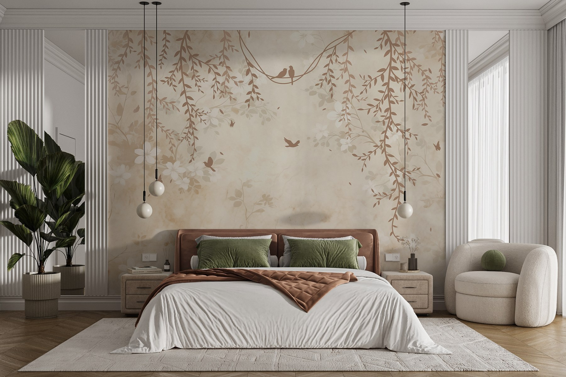 Transform any space with the charming “Wall Murals Birds on a Branch.” Picture this: soft, muted colors swirl around delicate flowers, while those sweet little birds sit peacefully, like they’re sharing secrets. It’s almost like stepping into a whispering forest right from your living room. Imagine lounging on the couch, a warm drink in hand, gazing at this serene retreat. It brings a lightness to the room, reminding everyone to pause and appreciate the little things. Perfect for cozy corners or any spot needing a touch of nature’s grace—because let’s face it, who couldn’t use more birds and blossoms in their life?