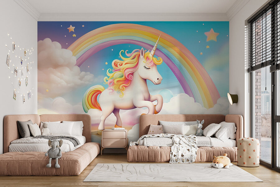 Transform any room into a whimsical wonderland with this enchanting wall mural featuring a cheerful unicorn prancing through clouds under a vibrant rainbow! It’s like a playful daydream that never ends, perfect for sparking imagination. Kids (and let’s be honest, adults too) will adore the magical vibes. Picture storytime filled with giggles, or a cozy space where creativity flows freely. This mural’s soft colors are a lovely backdrop—calming yet exciting, making it an ideal touch for a playroom or nursery. Who wouldn’t want to wake up to a little magic every morning?