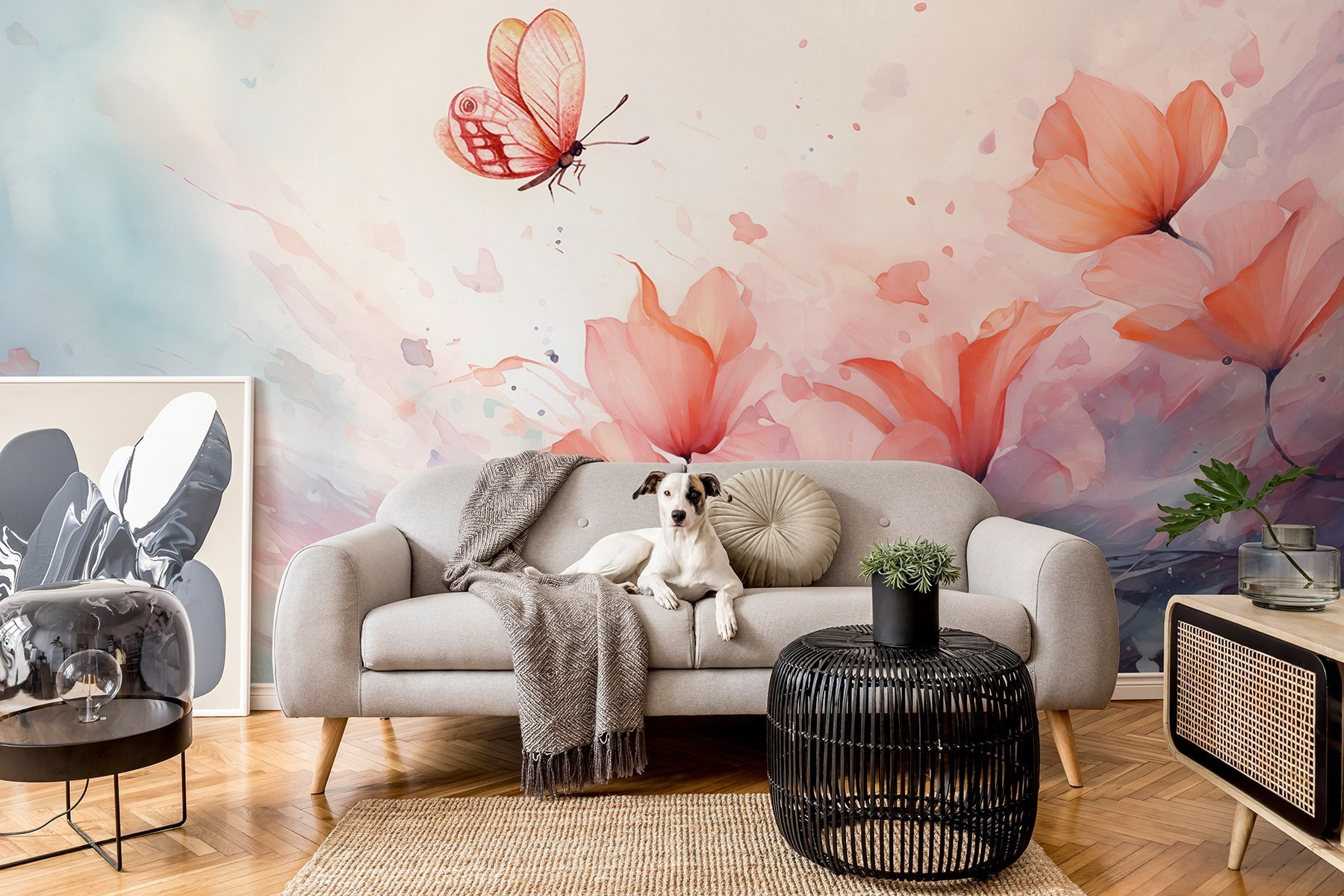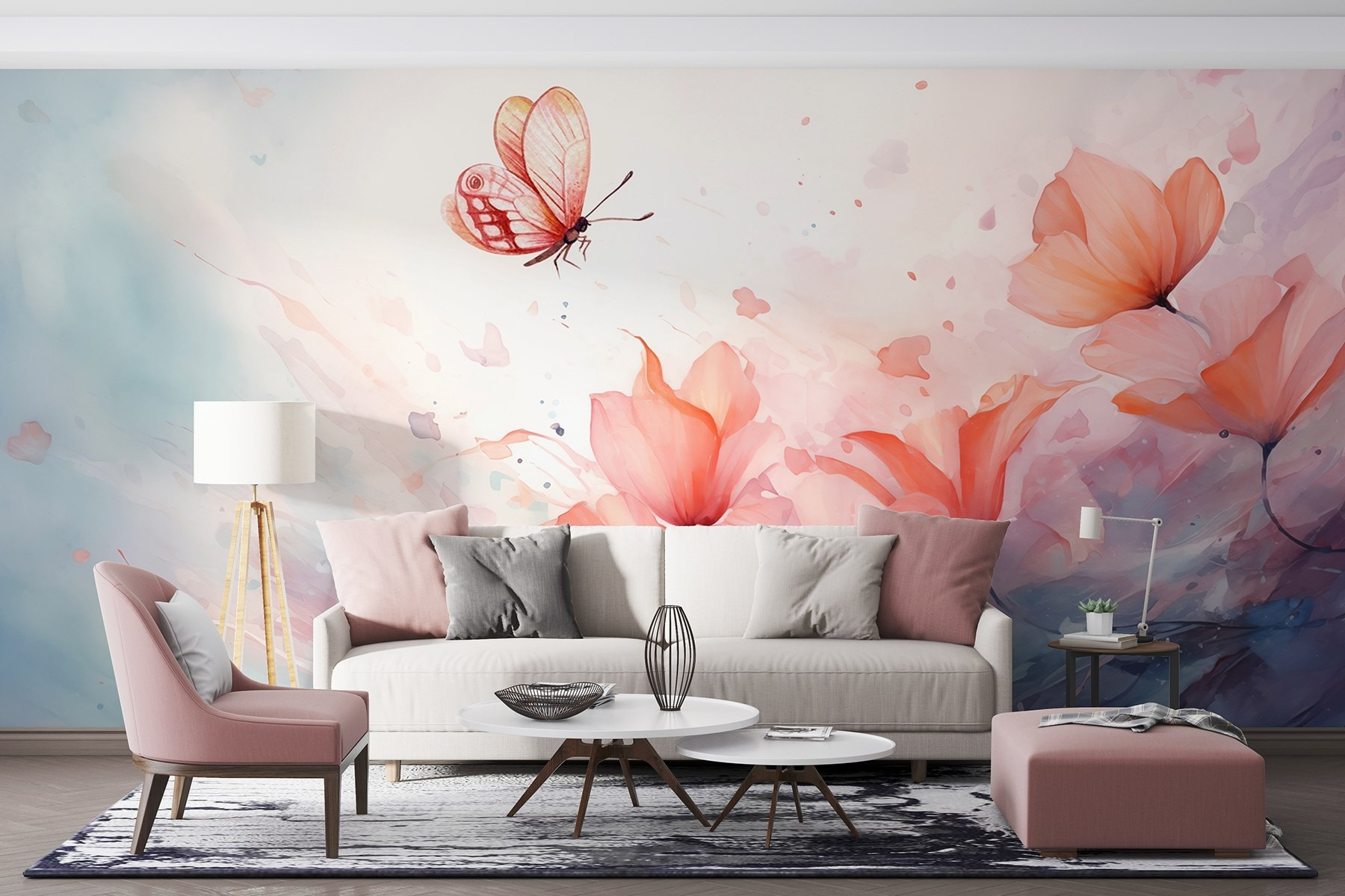 Transform your space into a tranquil haven with this enchanting wall mural featuring a butterfly gracefully fluttering over delicate flowers. The soft hues and watercolor effects create a dreamy backdrop, instantly lightening the mood. Imagine sipping tea, daydreaming, or just stealing glances at this beauty while wrapped in your favorite blanket. It’s like bringing a garden indoors without the pesky pollen! This mural whispers serenity, making it perfect for a cozy nook or a bright living room. Who wouldn’t want to feel like they’re in a breezy meadow every day?