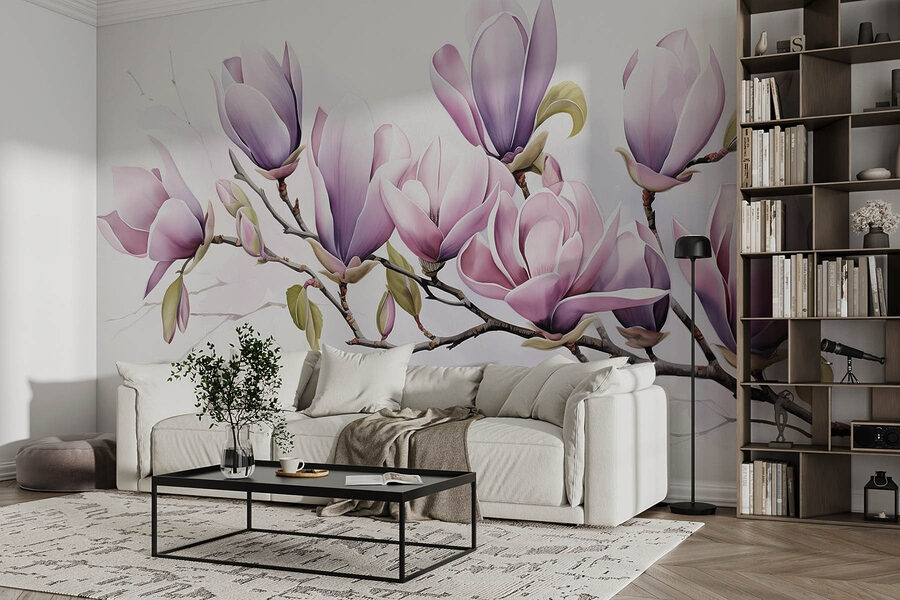 Bring a splash of nature indoors with the “Wall Murals Branch with Purple Flowers.” This stunning mural captures the delicate beauty of purple blossoms, making any room feel more vibrant and alive. Picture it in a cozy corner, where sunlight dances off the petals, instantly brightening the space. The soft watercolors evoke a sense of calm—perfect for those moments when you need to unwind. Friends will wonder how they missed these enchanting blooms in your home. It’s like having spring on your wall all year round! Who wouldn’t want a little beauty like this?
